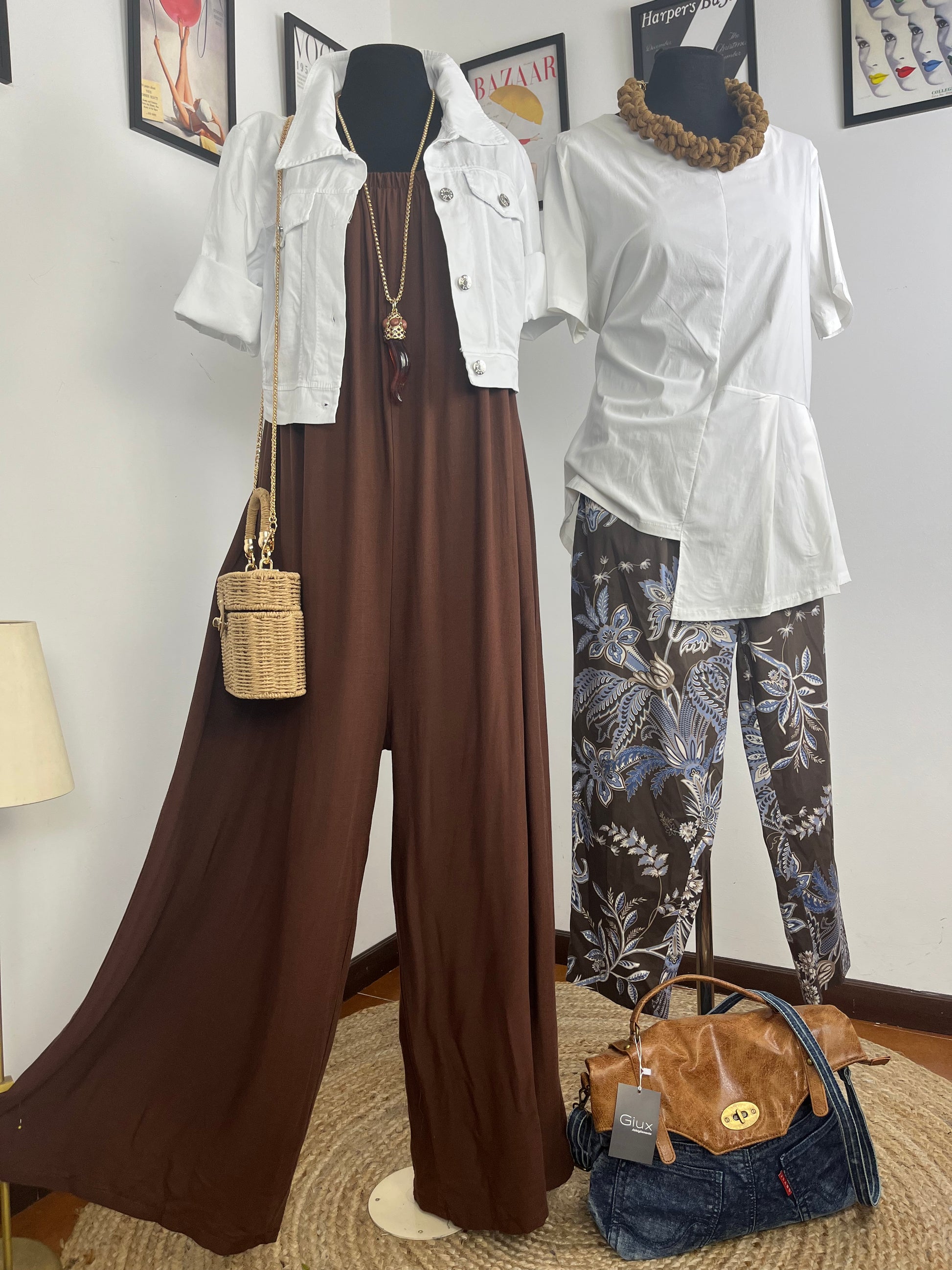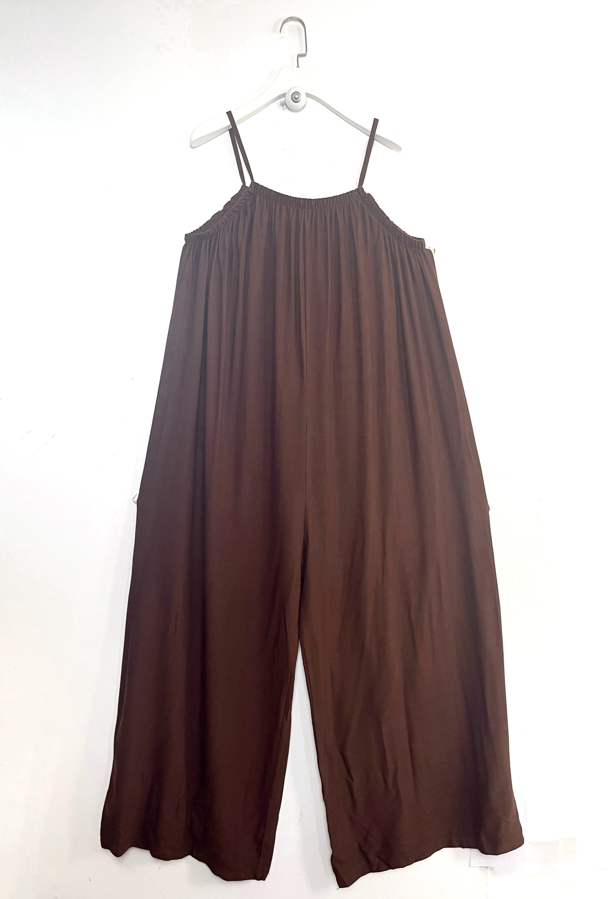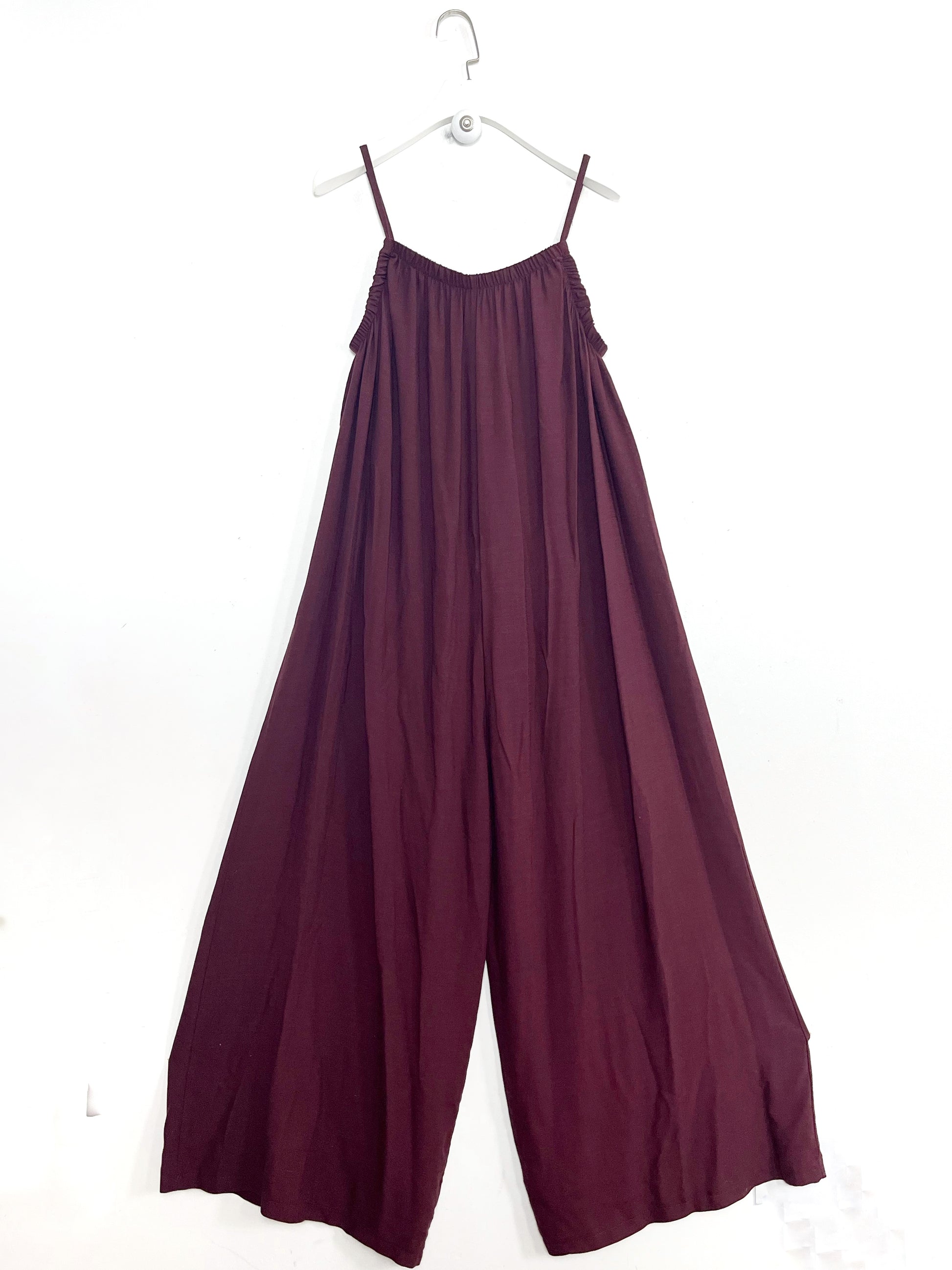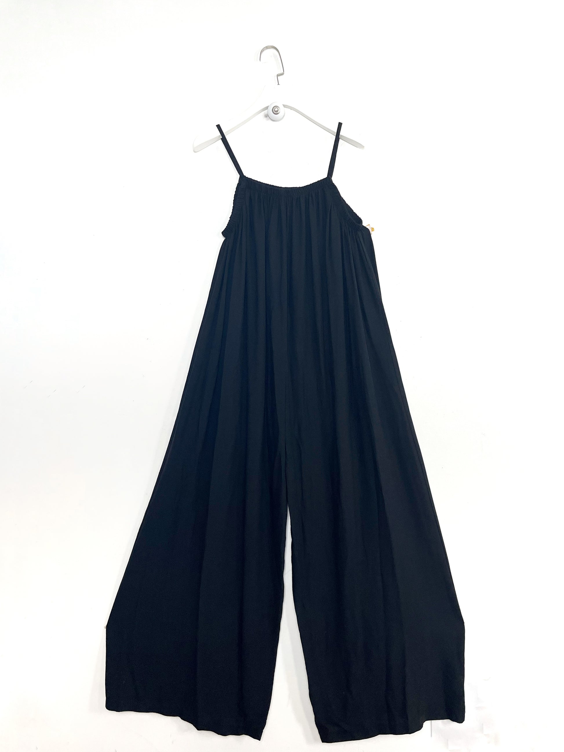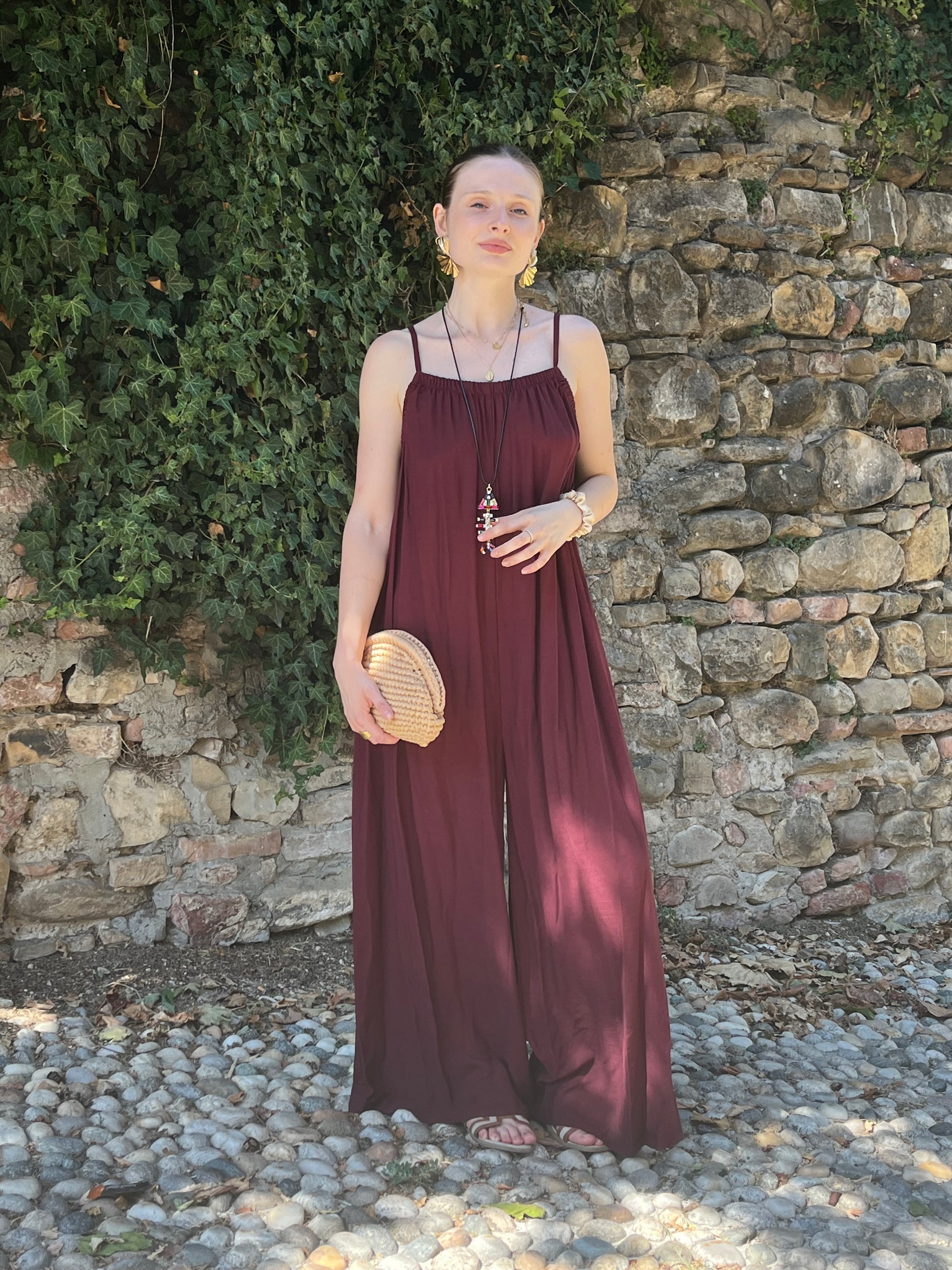 Jumpsuite in leggera viscosa, con spalline. Gamba larga molto ampia. Cavalli molto lungo. Lunghezza cavallo 70 cm