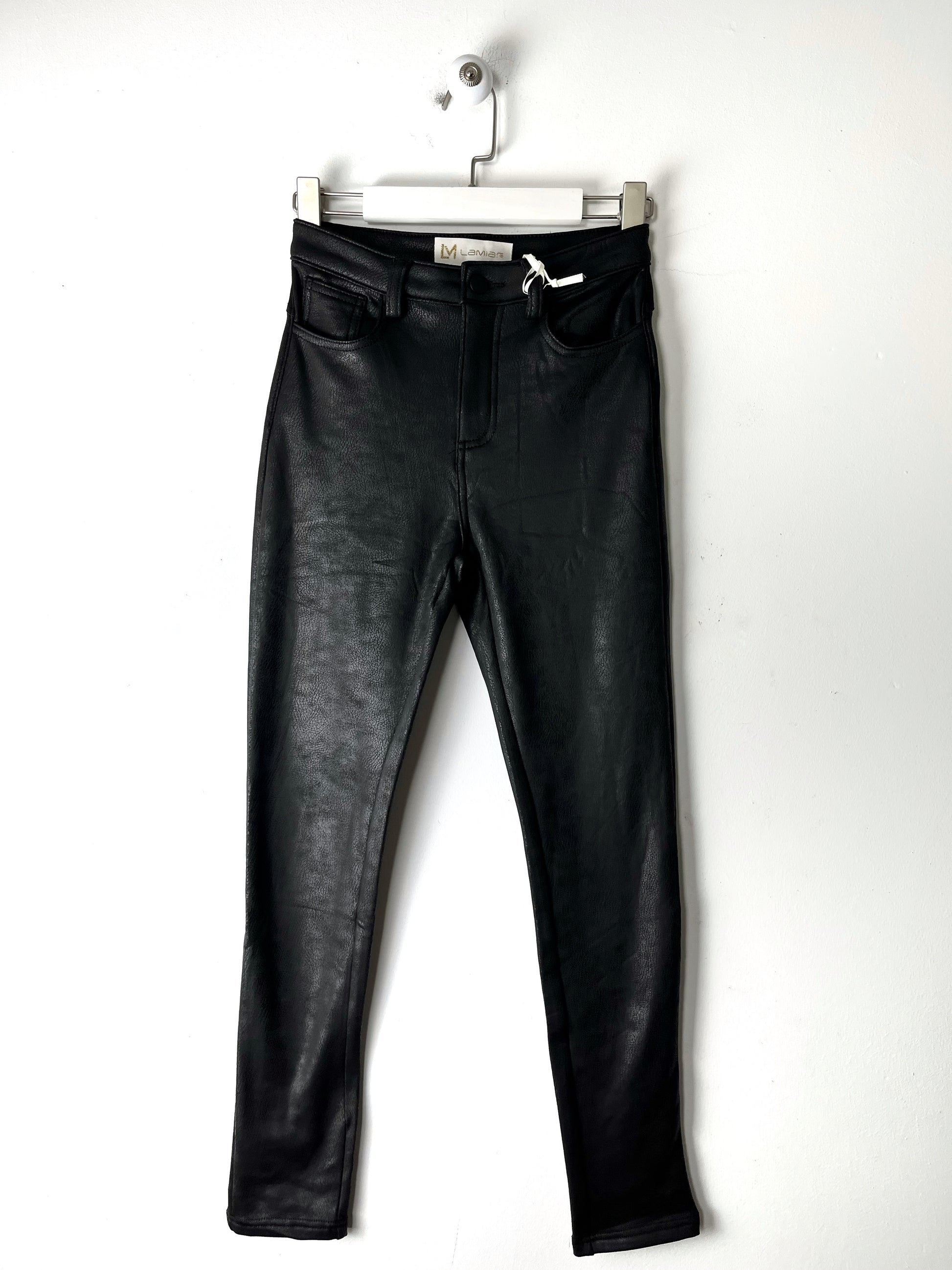 Jeggings in tessuto lucido effetto ecopelle. Vita alta, tasche davanti e dietro, leggermente felpati.