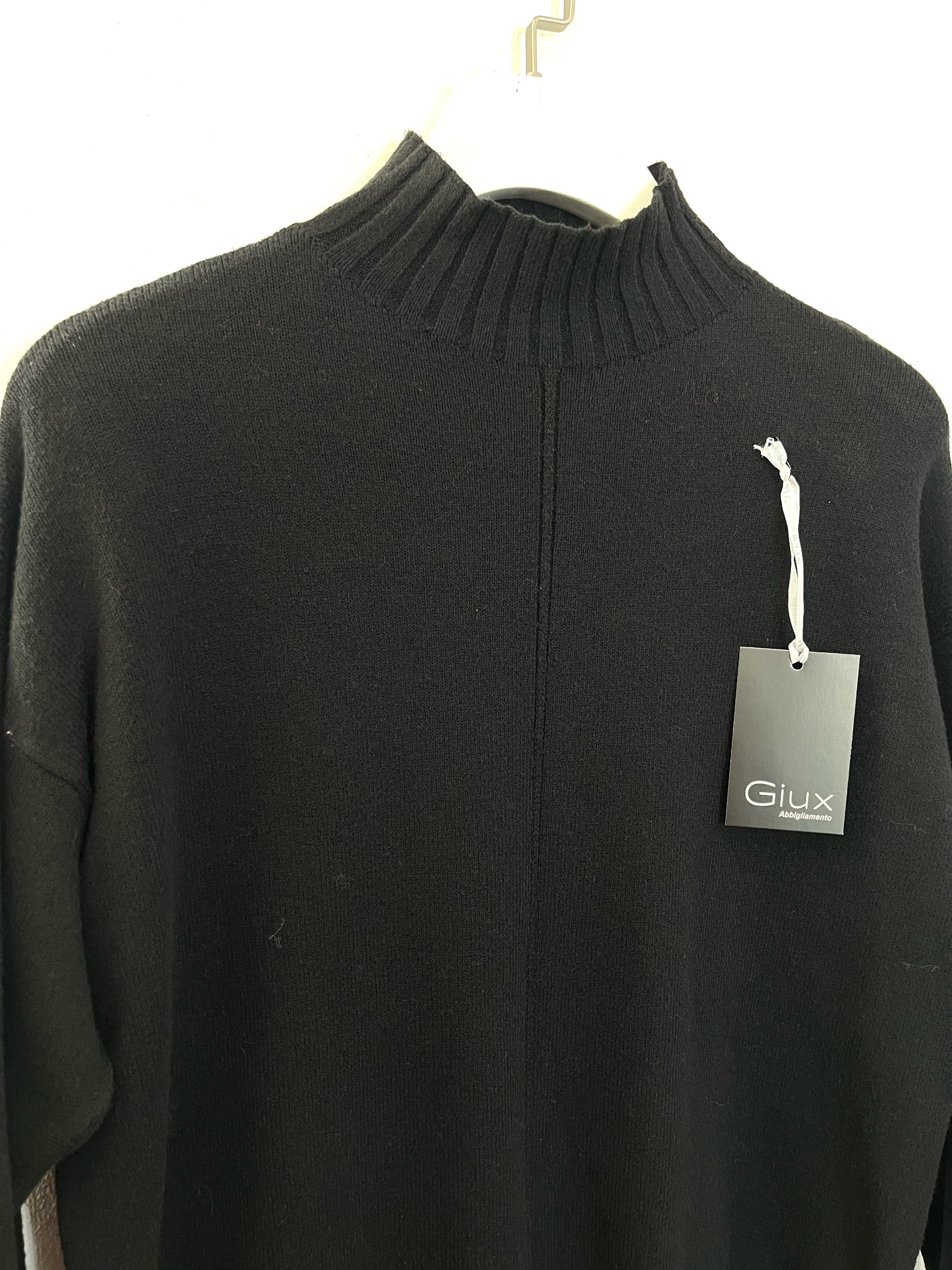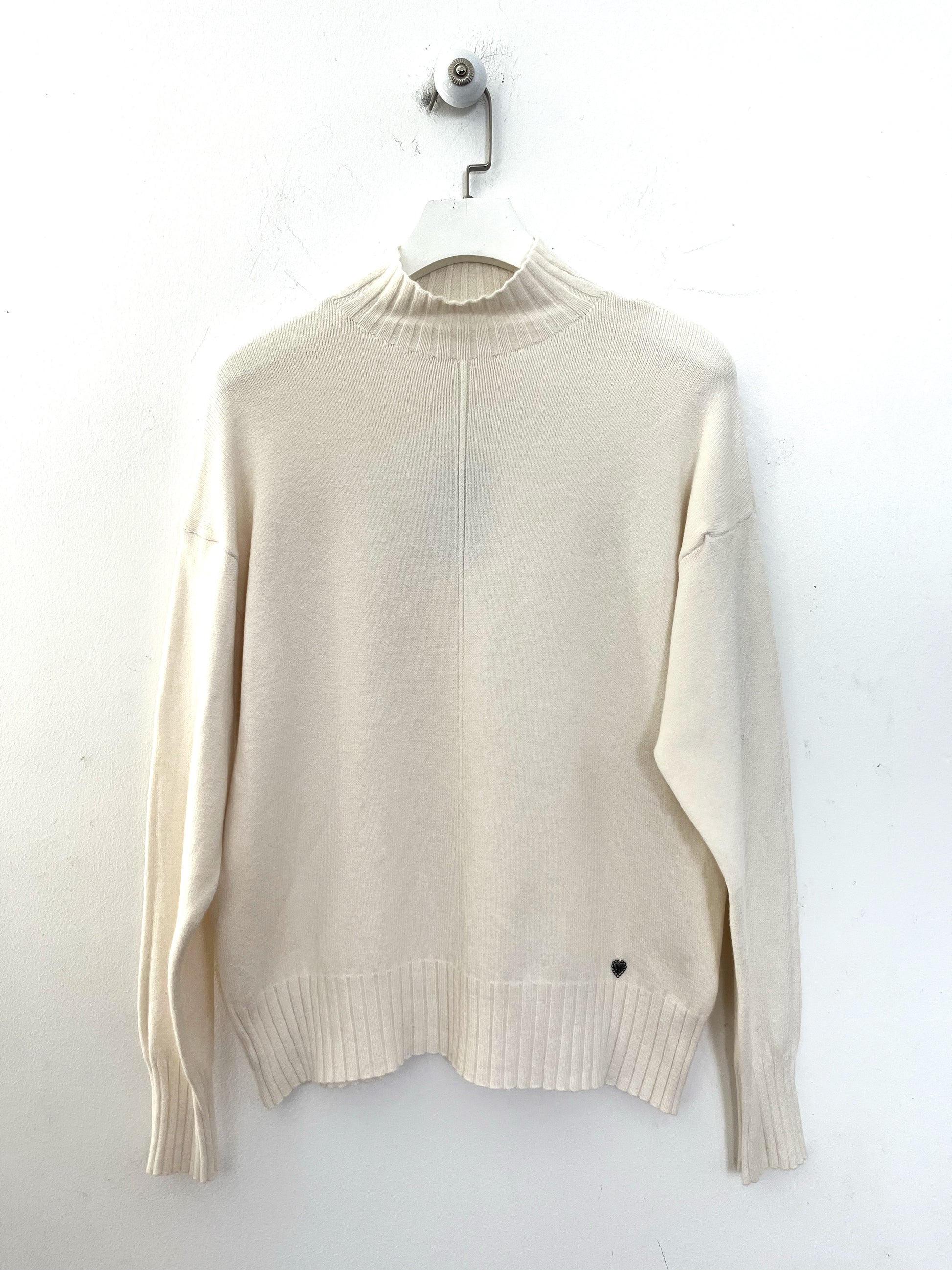 Maglioncino in calda viscosa a lupetto. Spalla ribassata. Manica lunga con polsino.