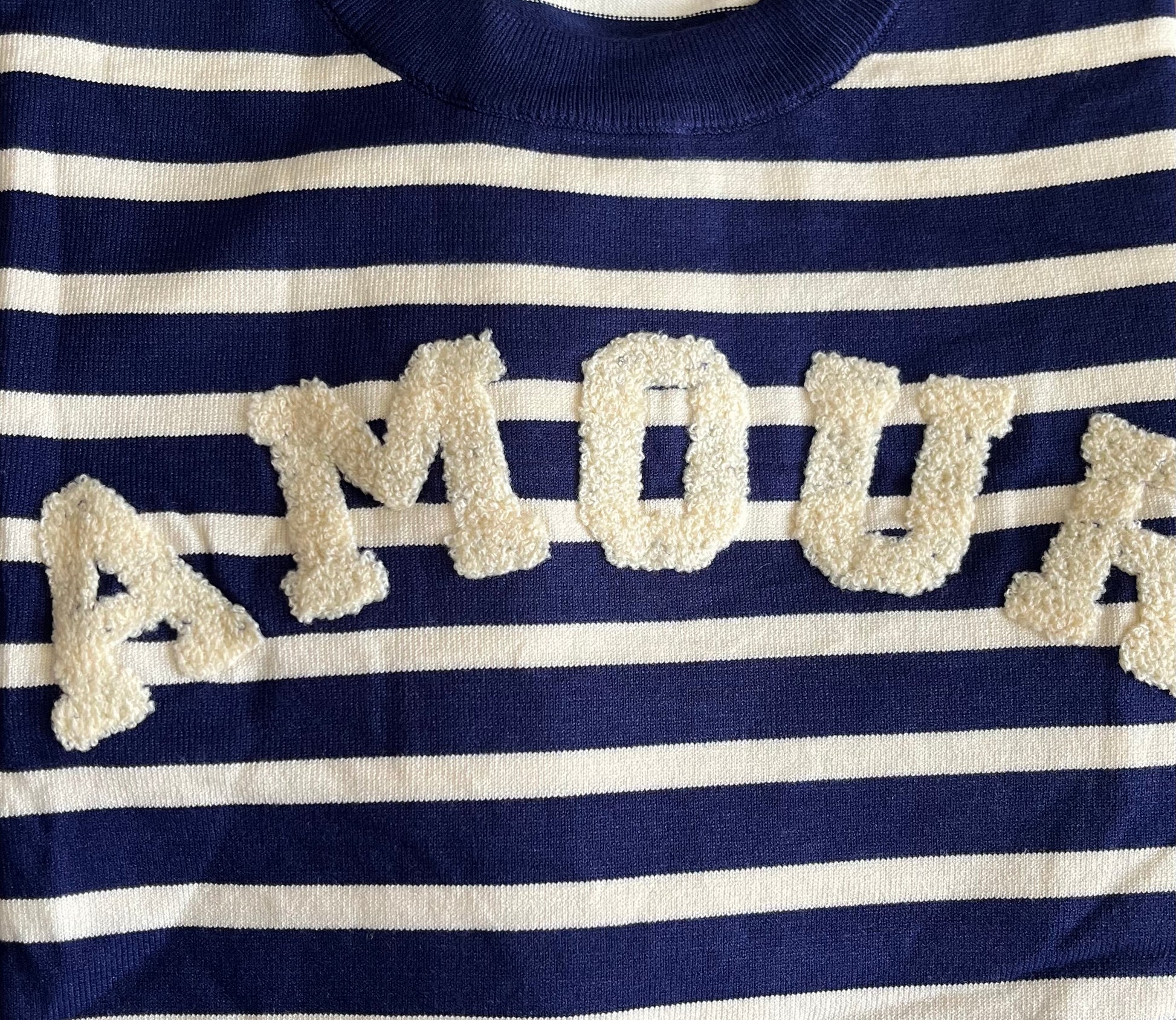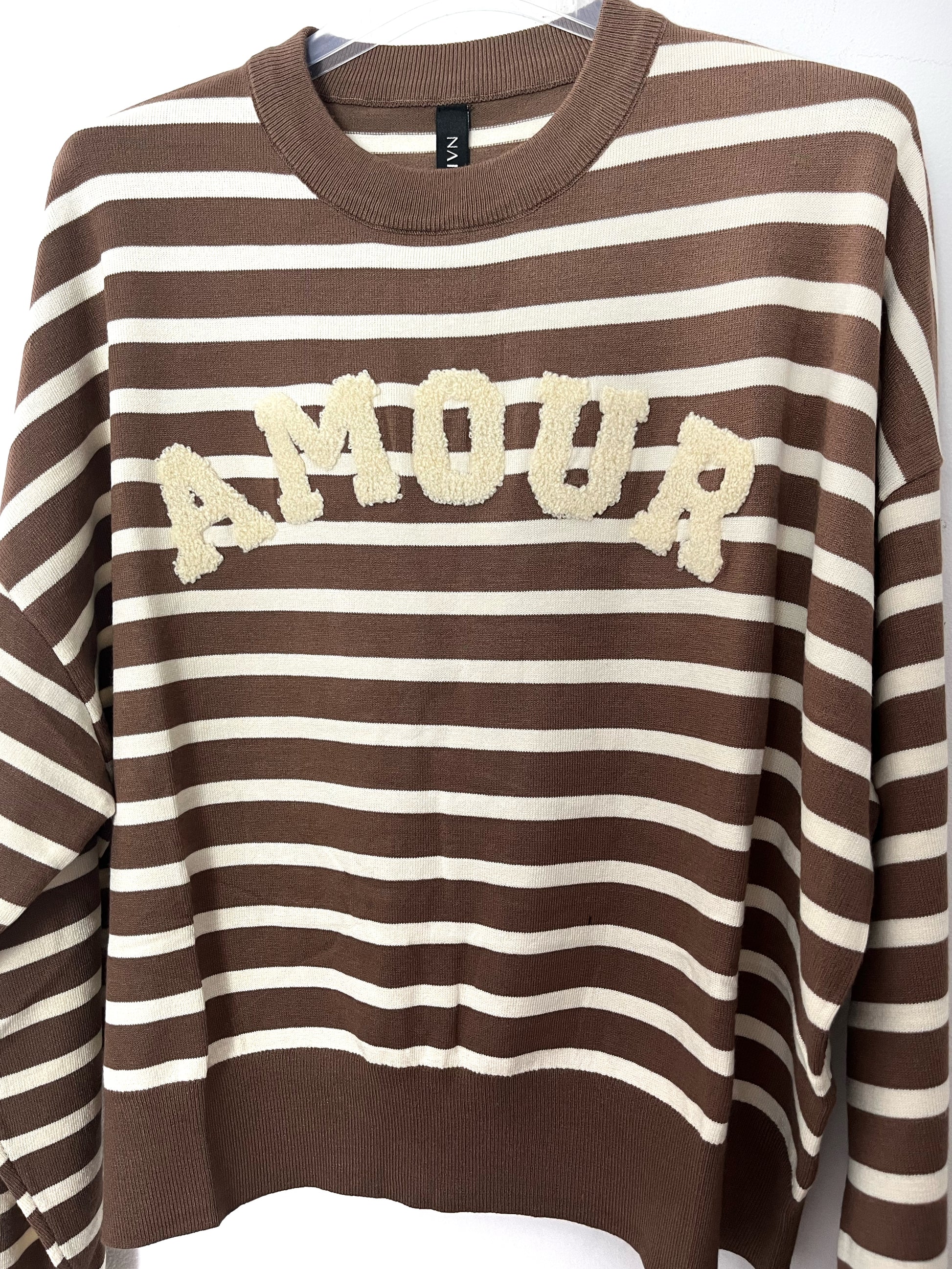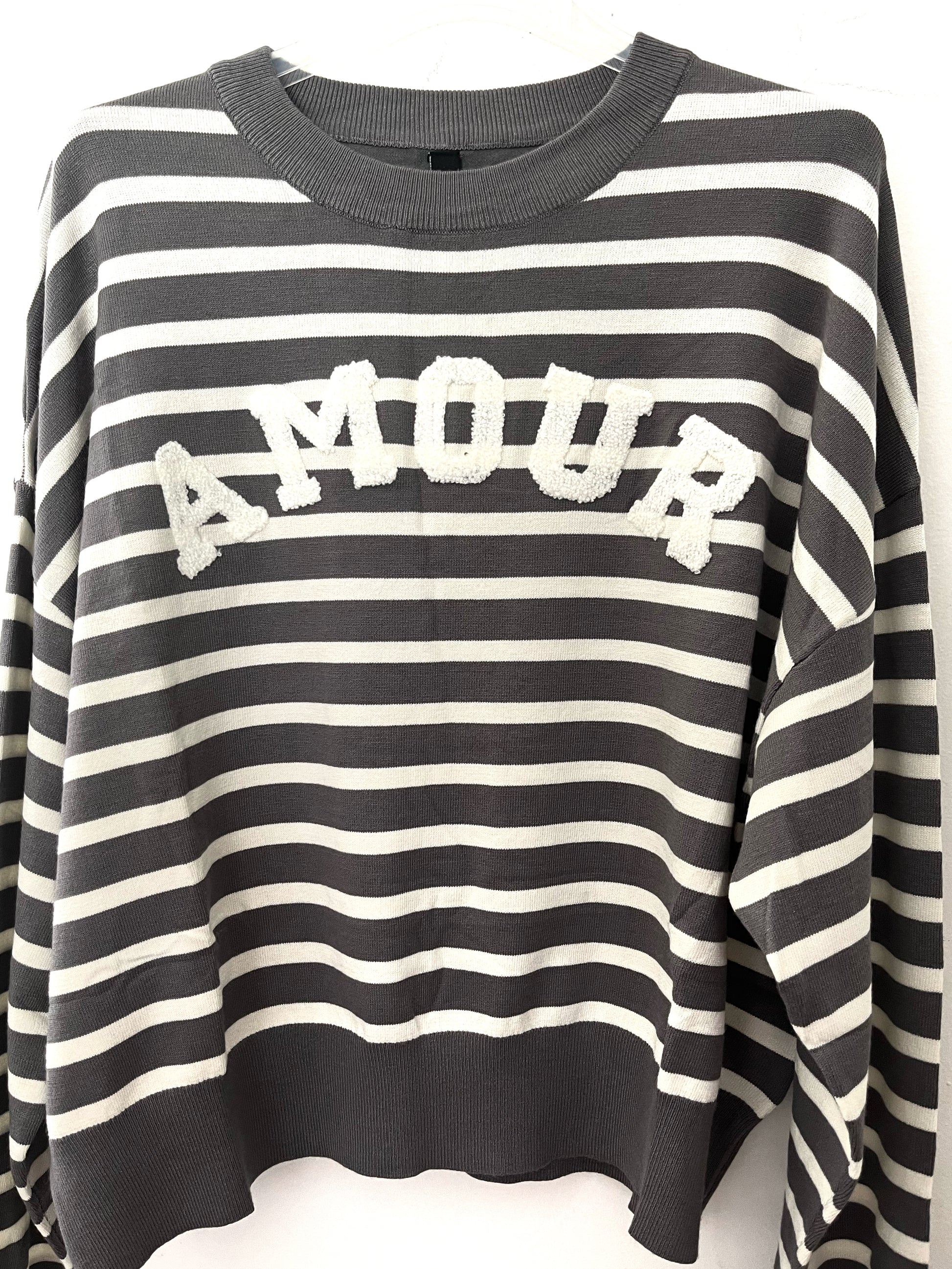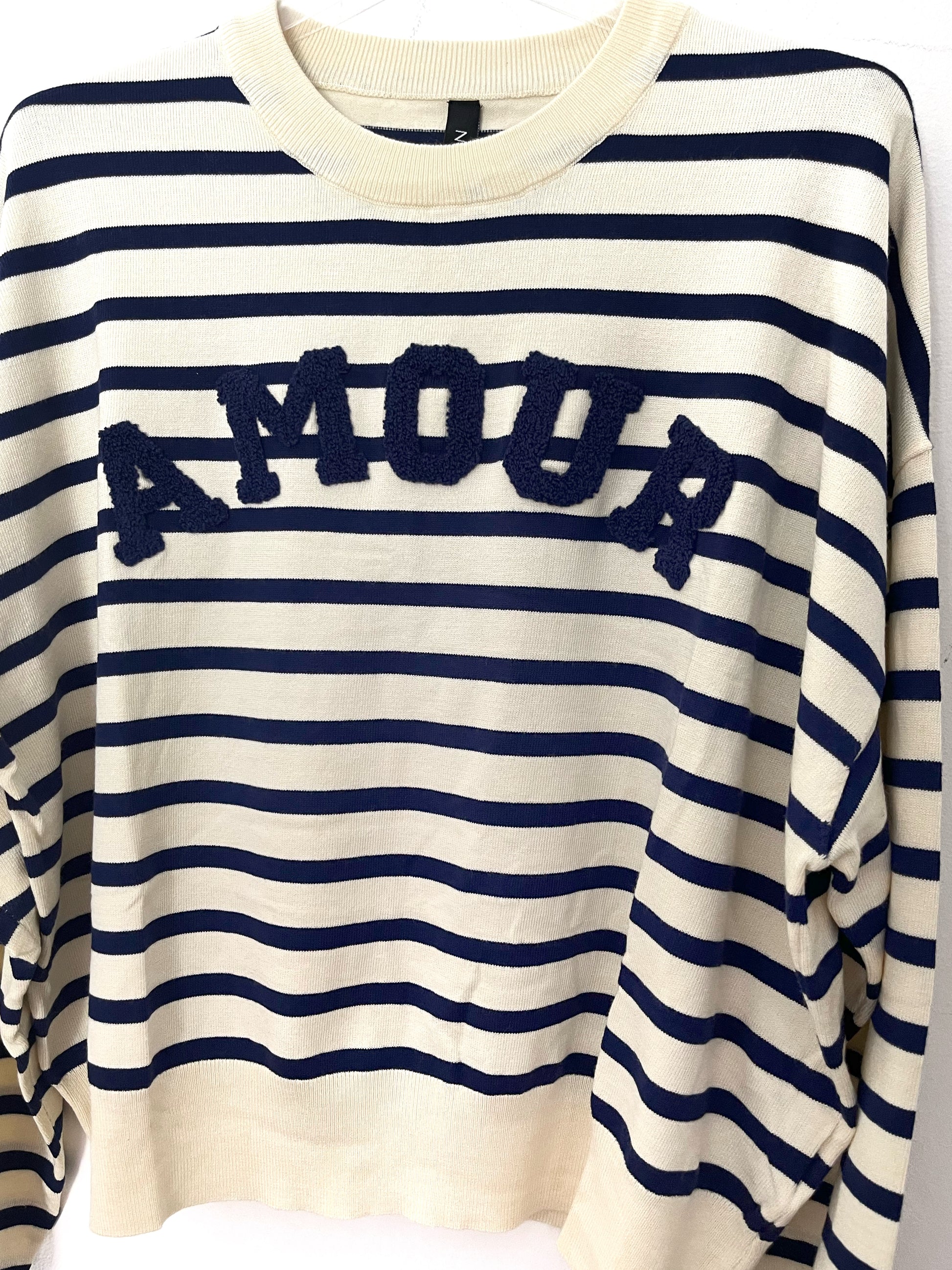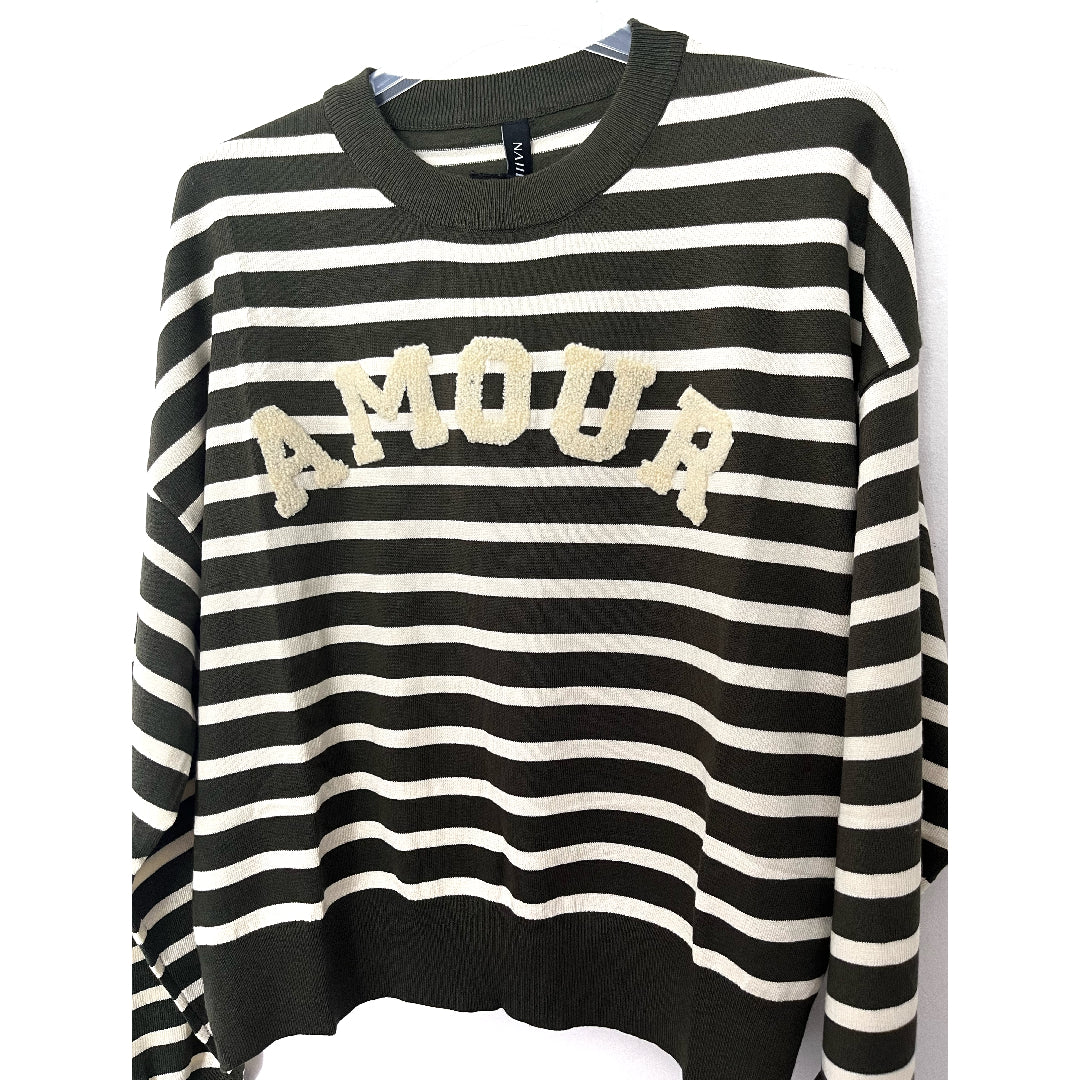 Maglioncino Amour rigato bicolore, girocollo in calda viscosa