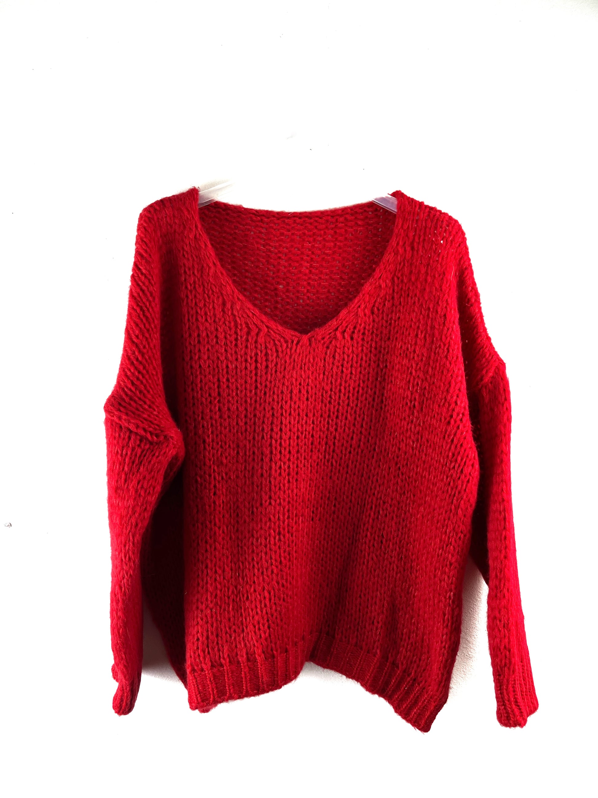 Maglioncino in morbido mohair, scollatura a V. Spalla ribassata. Polsino nella manica