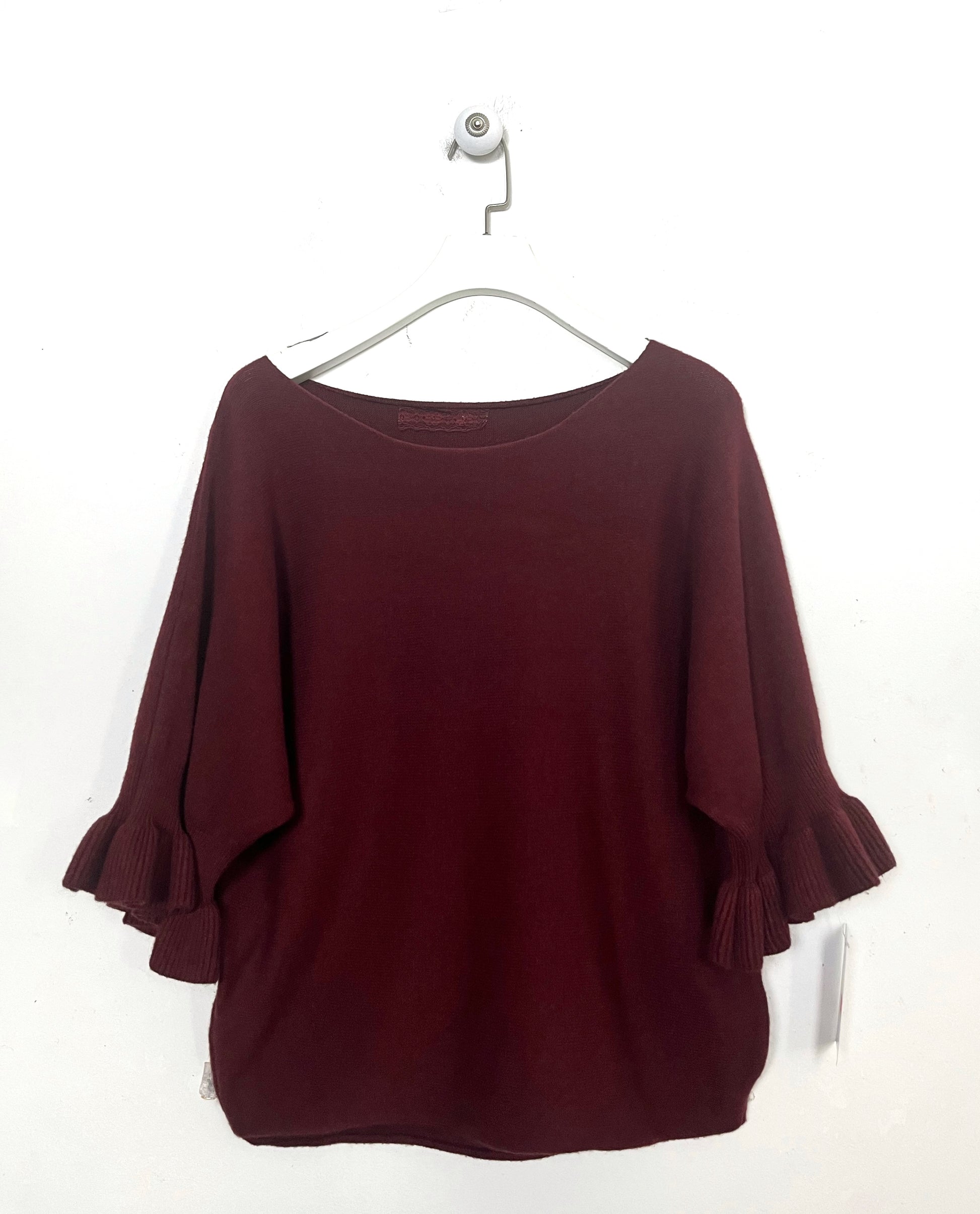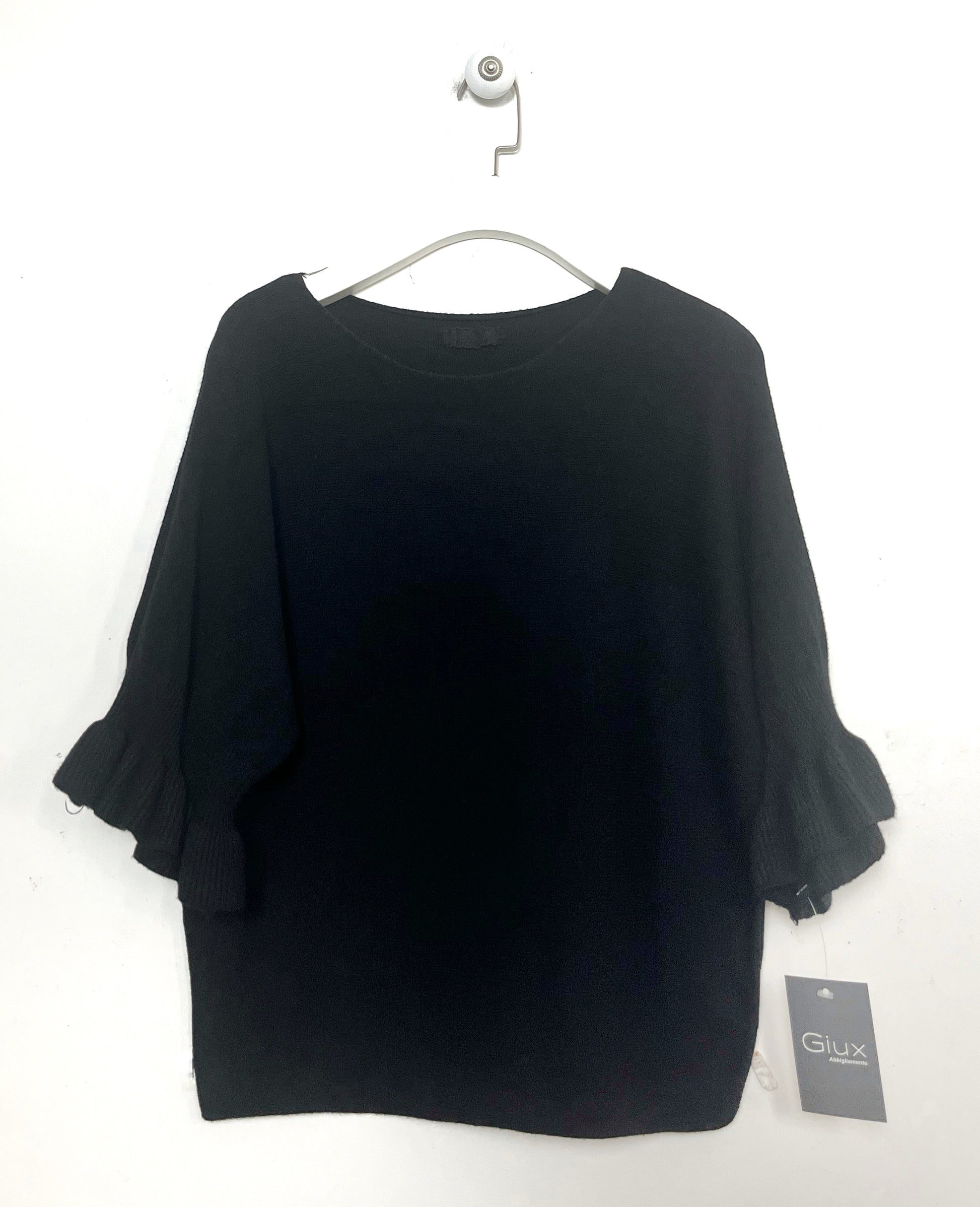 Maglioncino in calda viscosa girocollo. Manica tre quarti con Rouge.