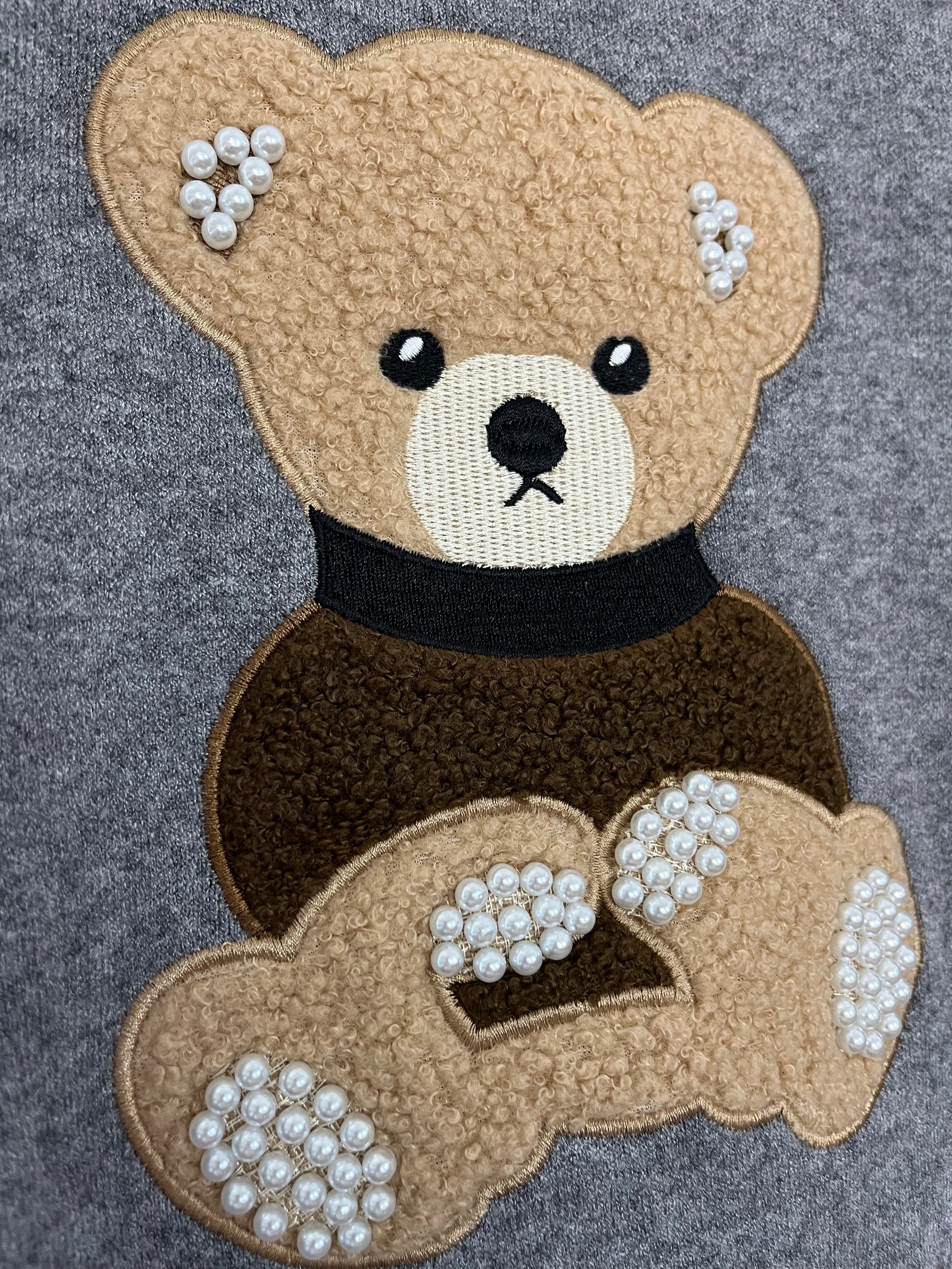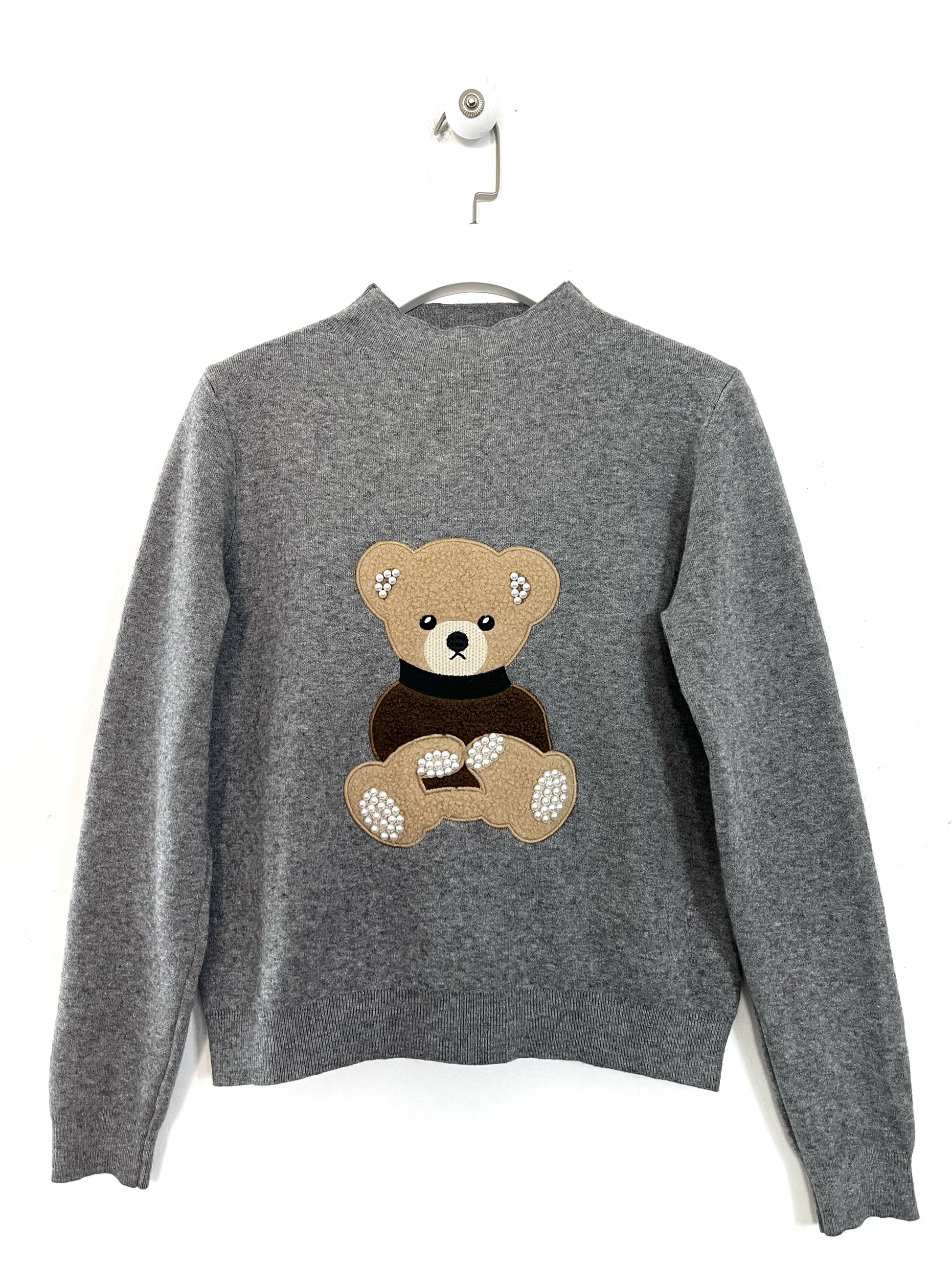 Maglioncino in calda viscosa a lupetto. Manica lunga con polsino. Applicazione sul davanti con perline. Cropped