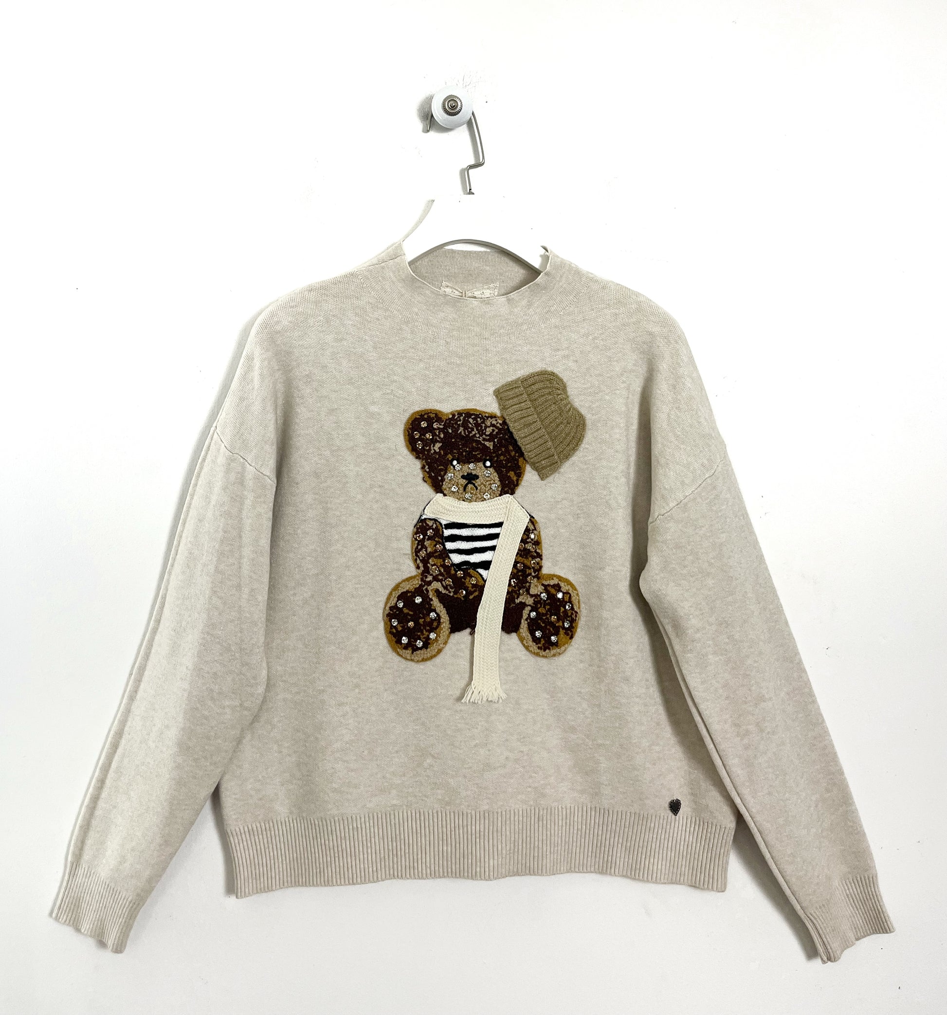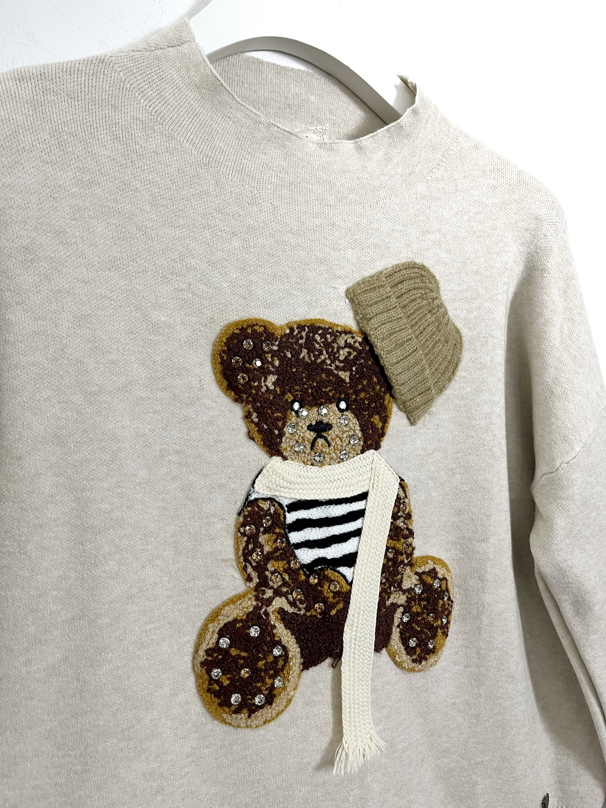 Maglioncino in calda viscosa a lupetto. Manica lunga con polsino. Applicazione sul davanti con perline. Cropped