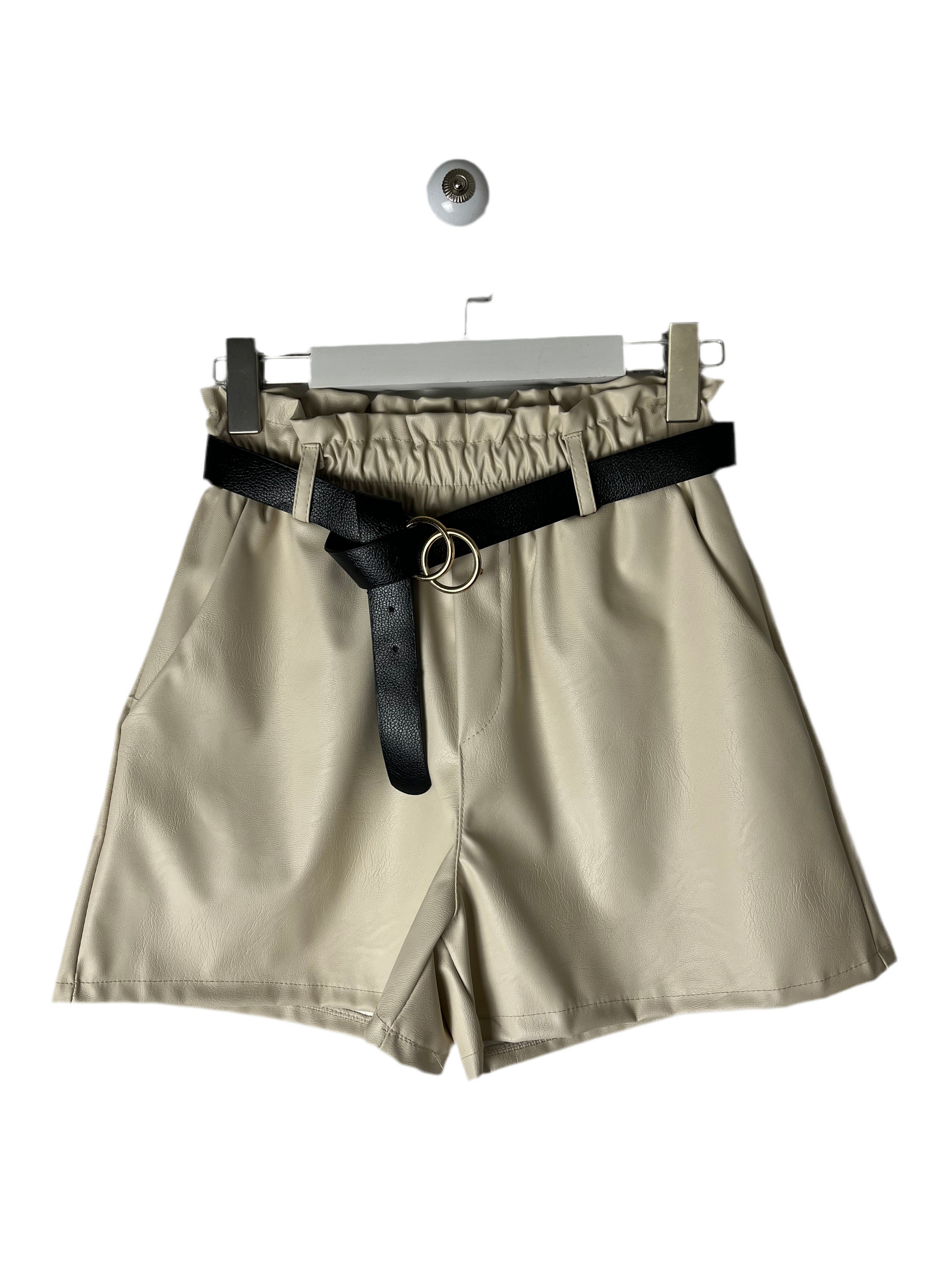 Pantaloncini in morbida eco pelle elastico in vita con passanti e cintura.paste laterali