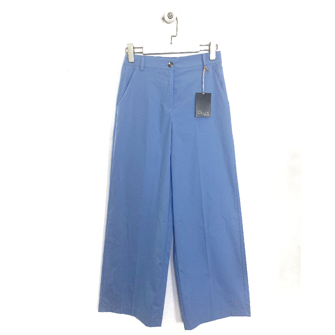 Pantalone a palazzo, in puro cotone Vita alta con elastico dietro e passanti. Tasche laterali oblique