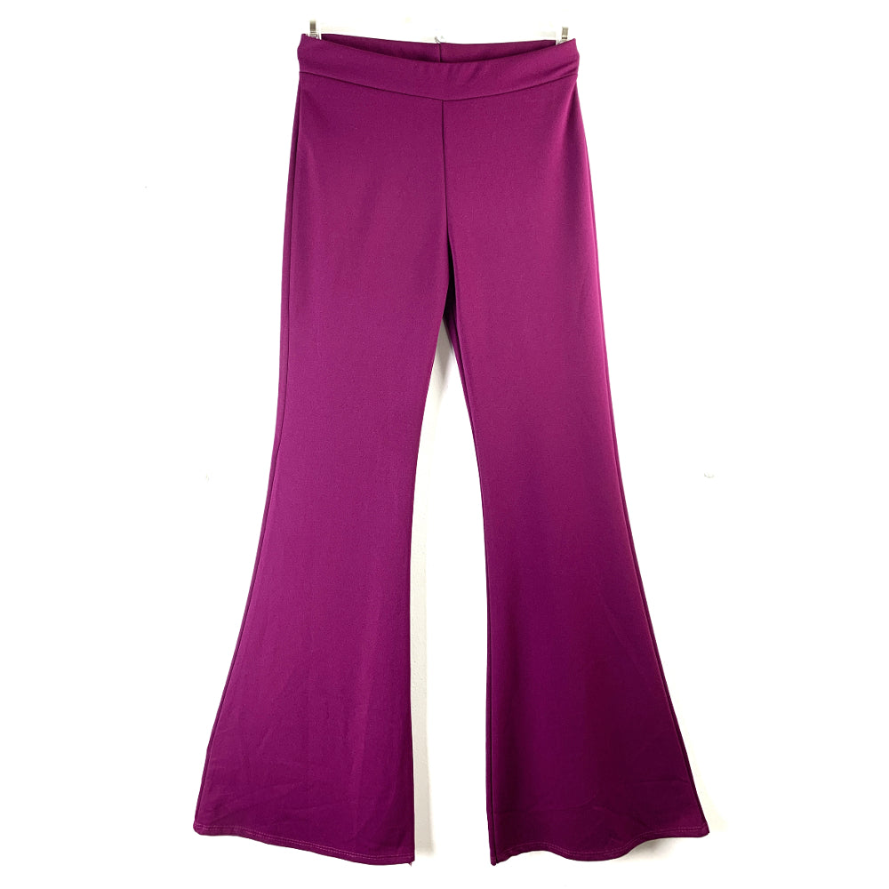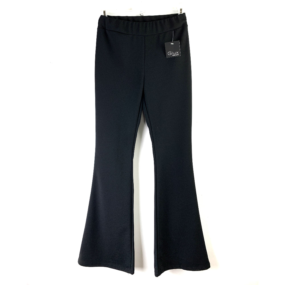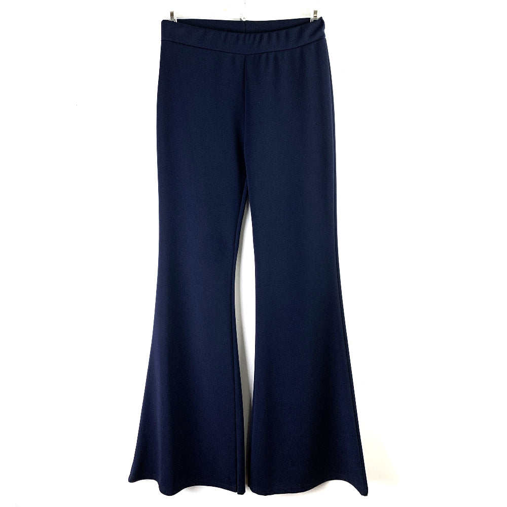 Pantalone a zampa. Vita alta con elastico. Aderente in gamba, svasato a zampa in fondo. Elasticizzato