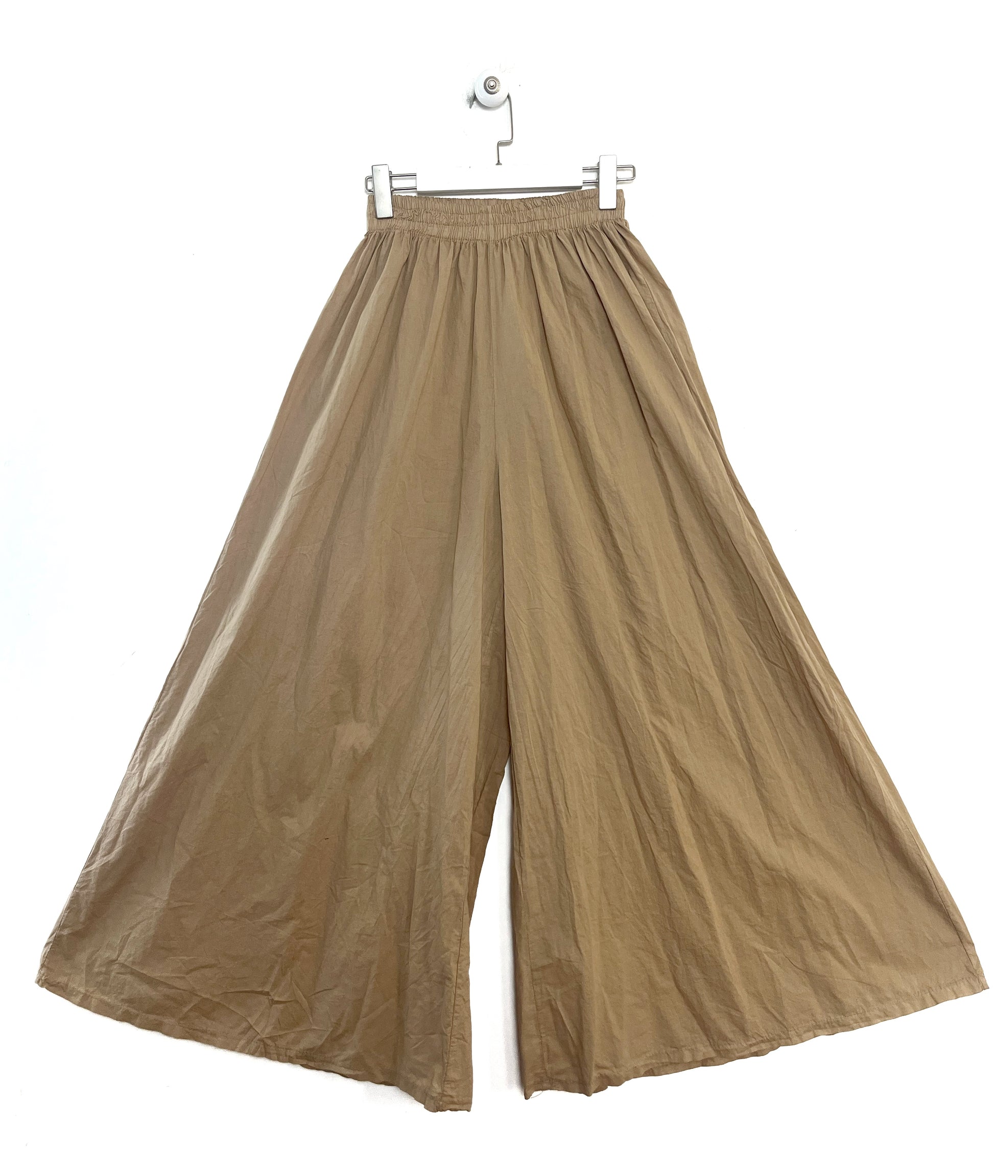 Pantalone in puro cotone con gamba a palazzo. Vita alta con elastico.