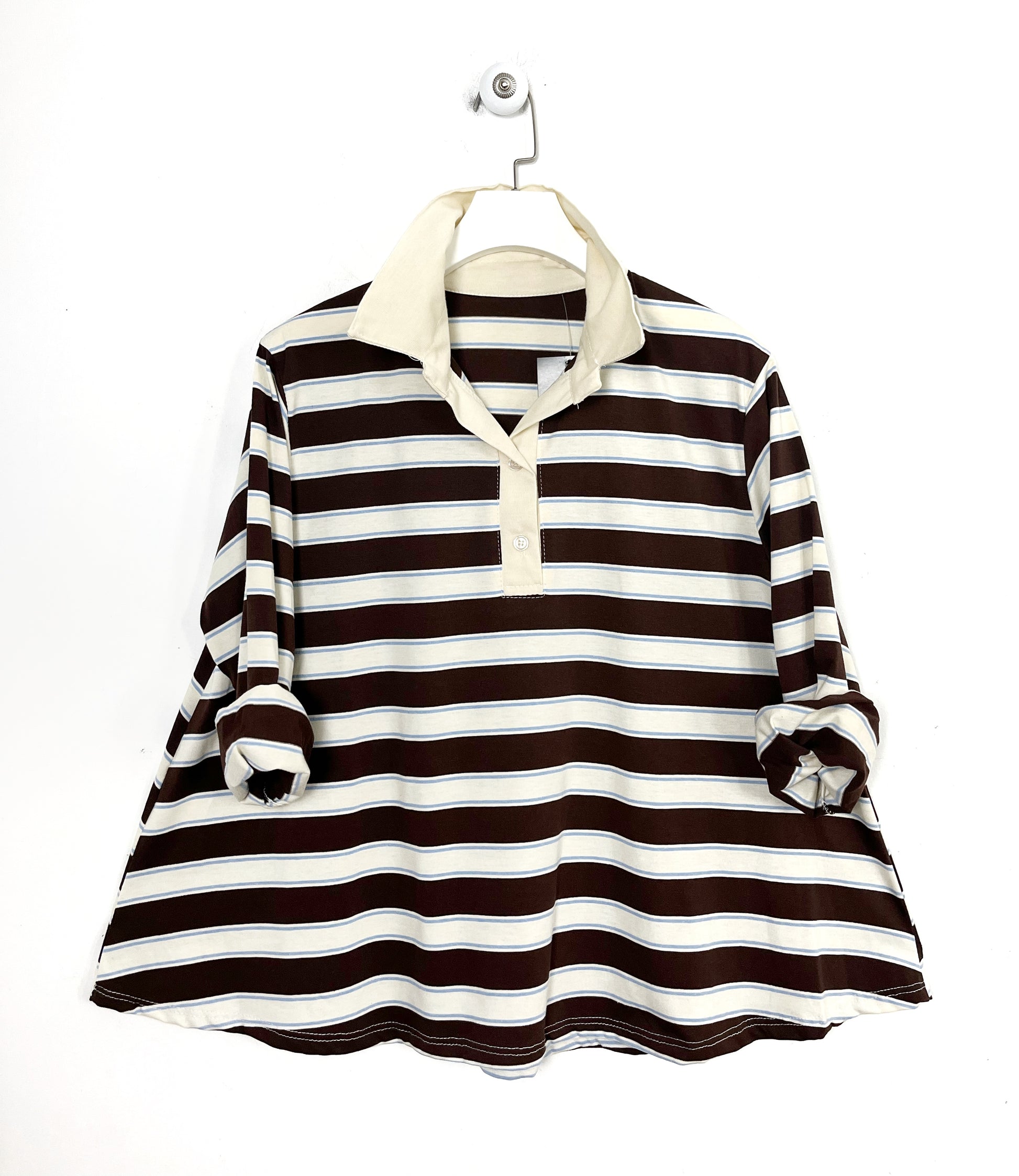 Polo in cotone dal taglio over, con colletto e apertura con tre bottoni. Manica lunga. Svasata sul fondo.