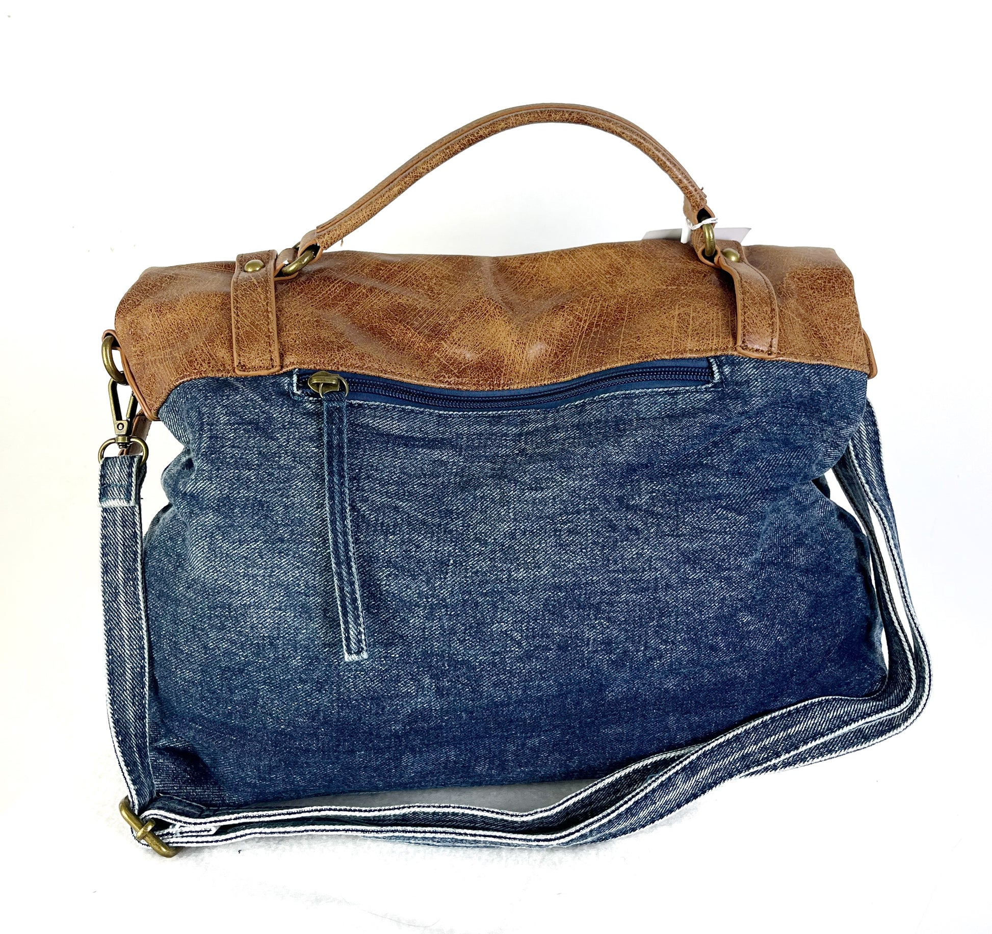 Borsa Postinain jeans ed ecopelle con manico e tracolla. Misura media.