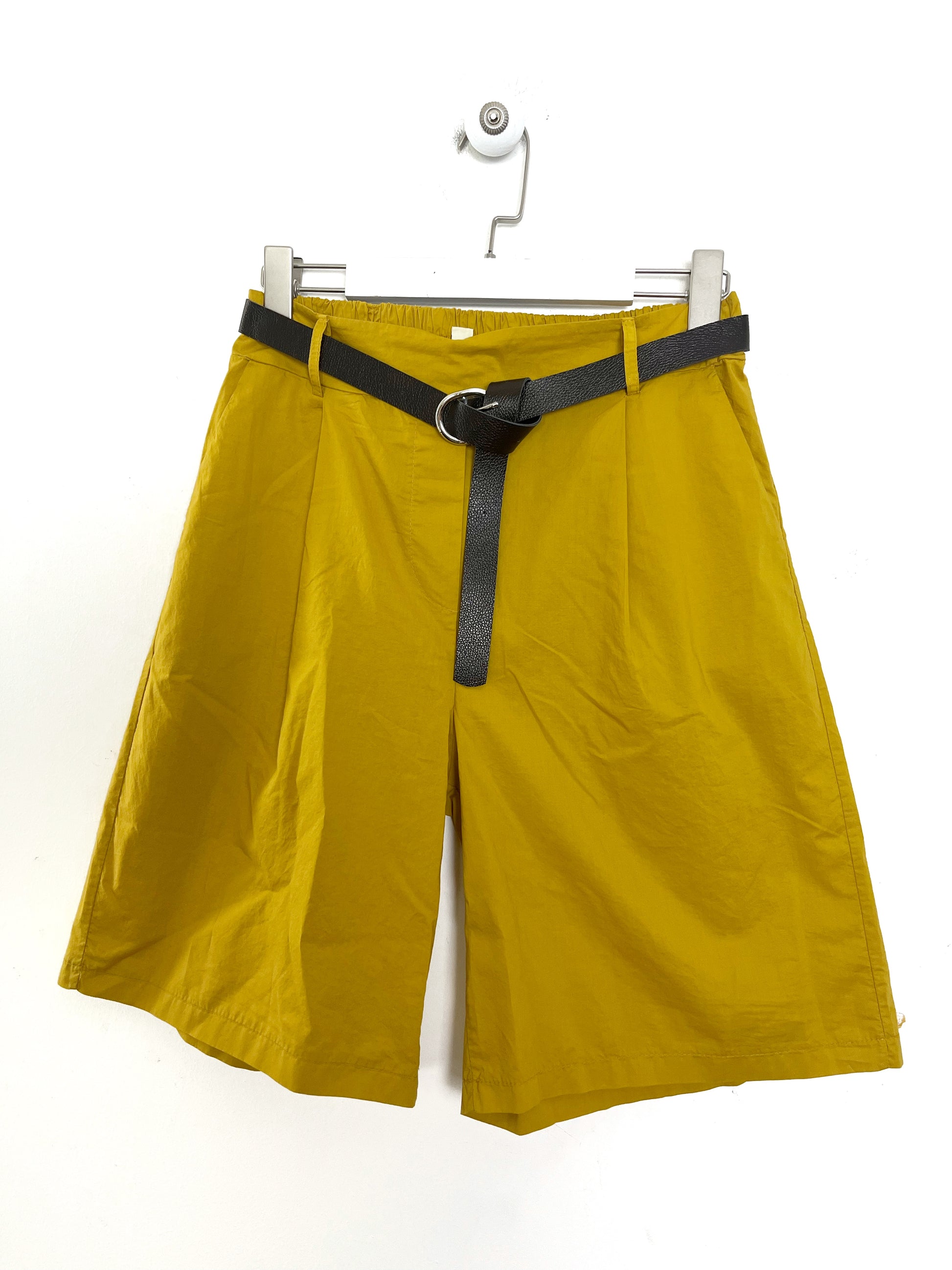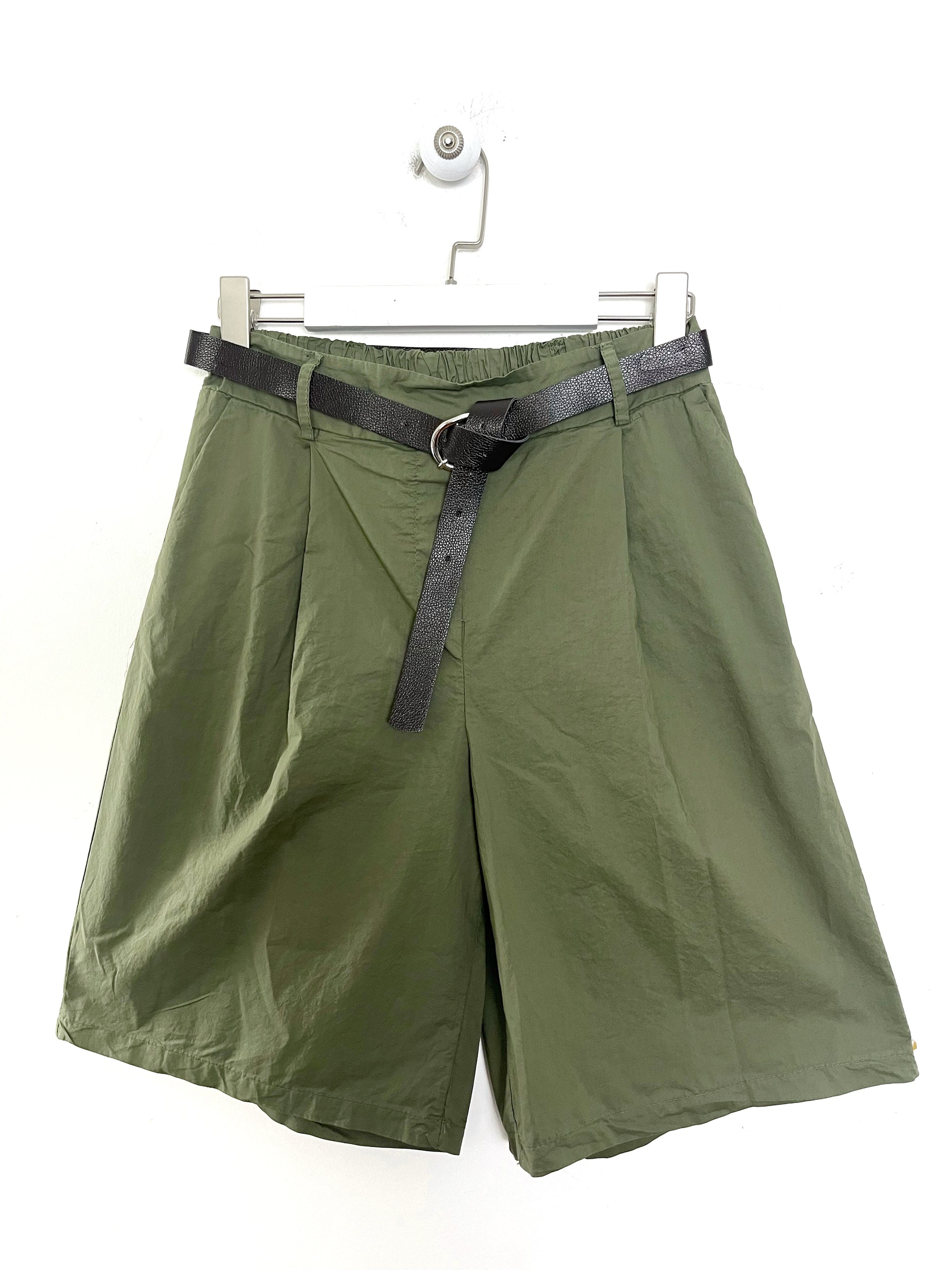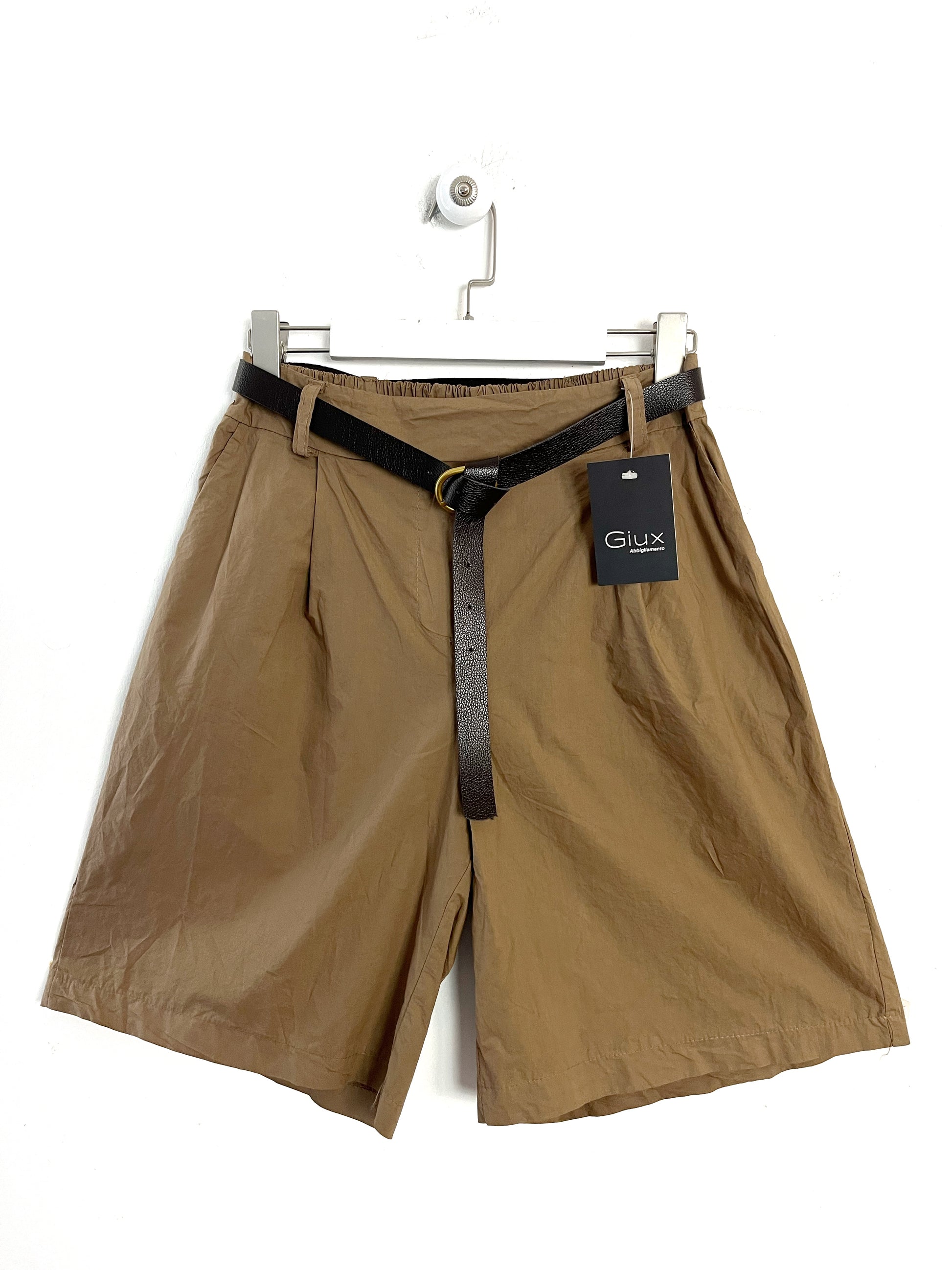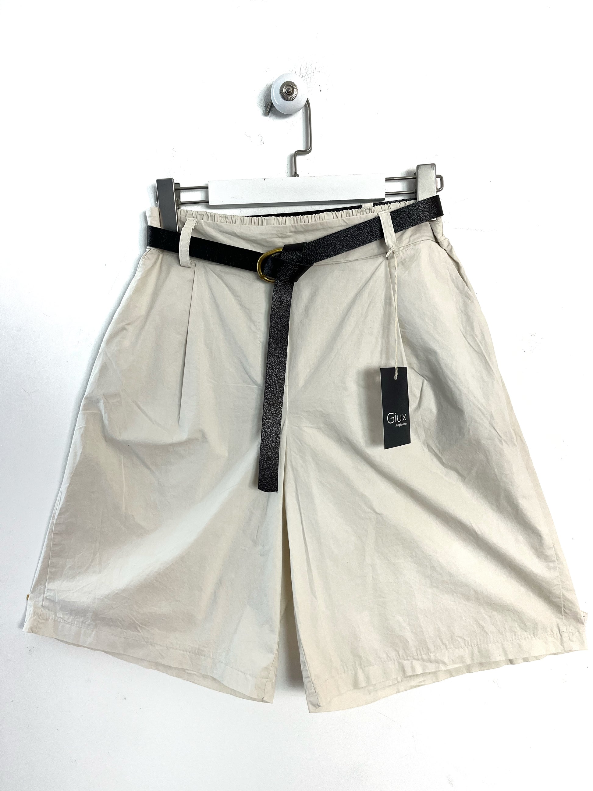 Shorts in viscosa. Vita alta arricciata, passanti con cintura in tessuto. Tasche laterali