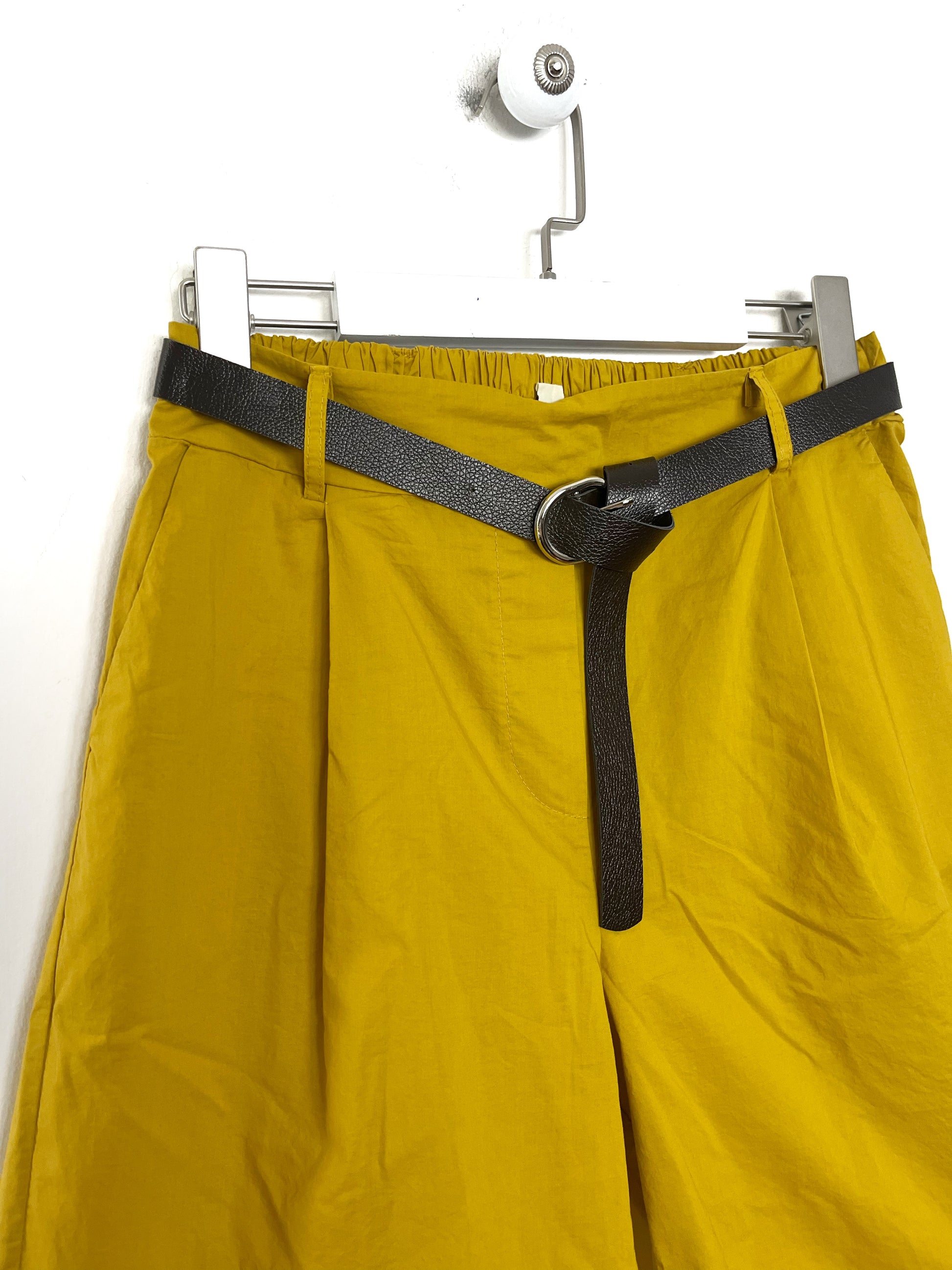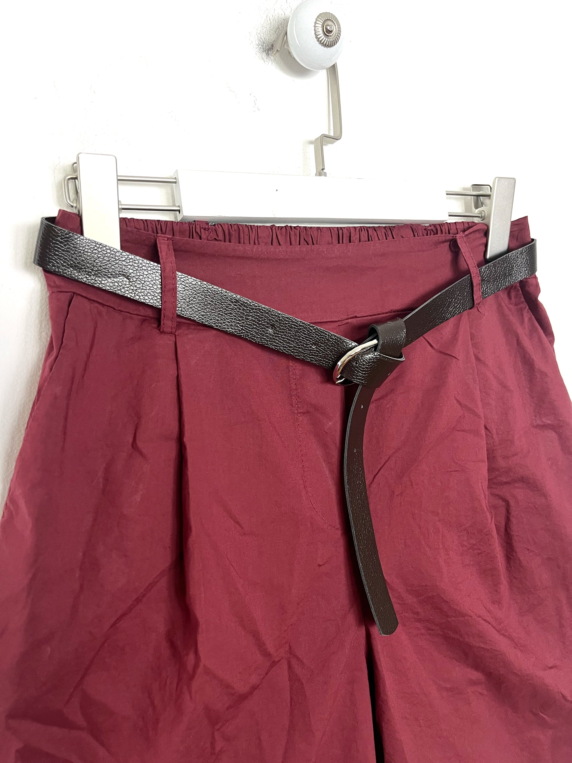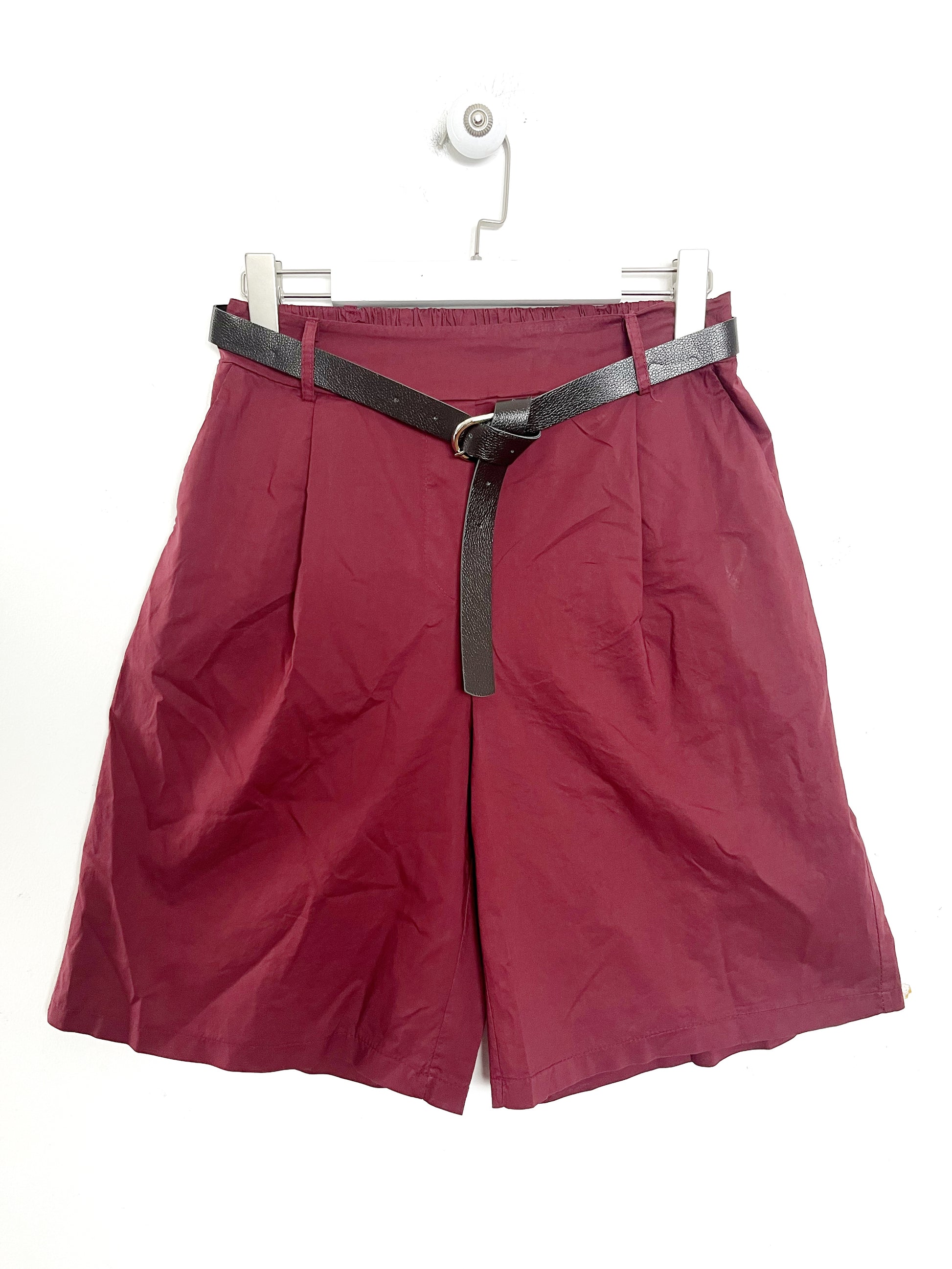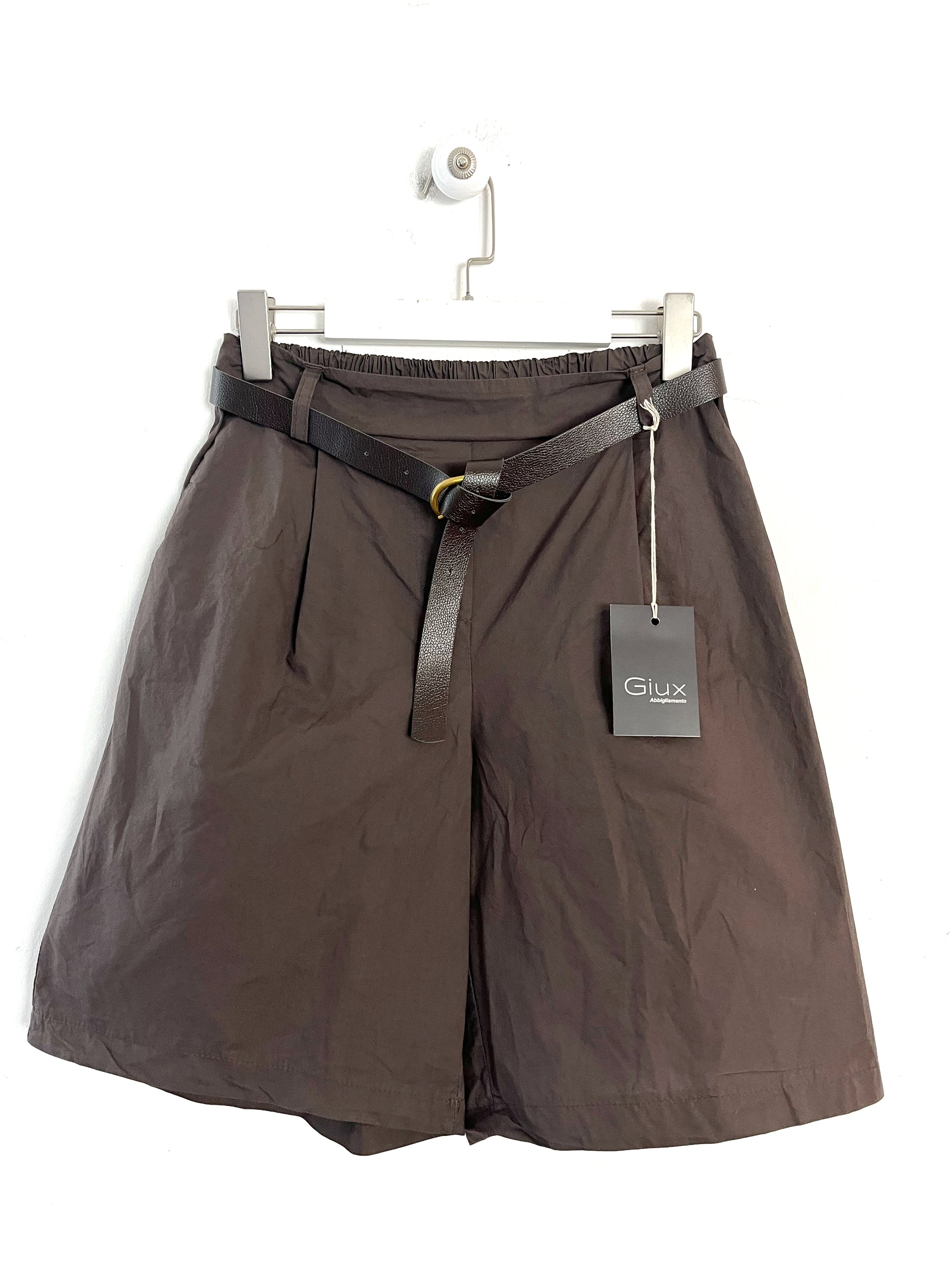 Shorts in viscosa. Vita alta arricciata, passanti con cintura in tessuto. Tasche laterali