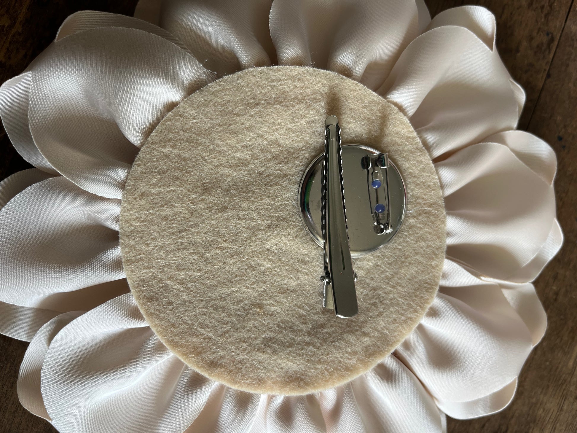 Spilla e fermaglio a forma di fiore in tessuto