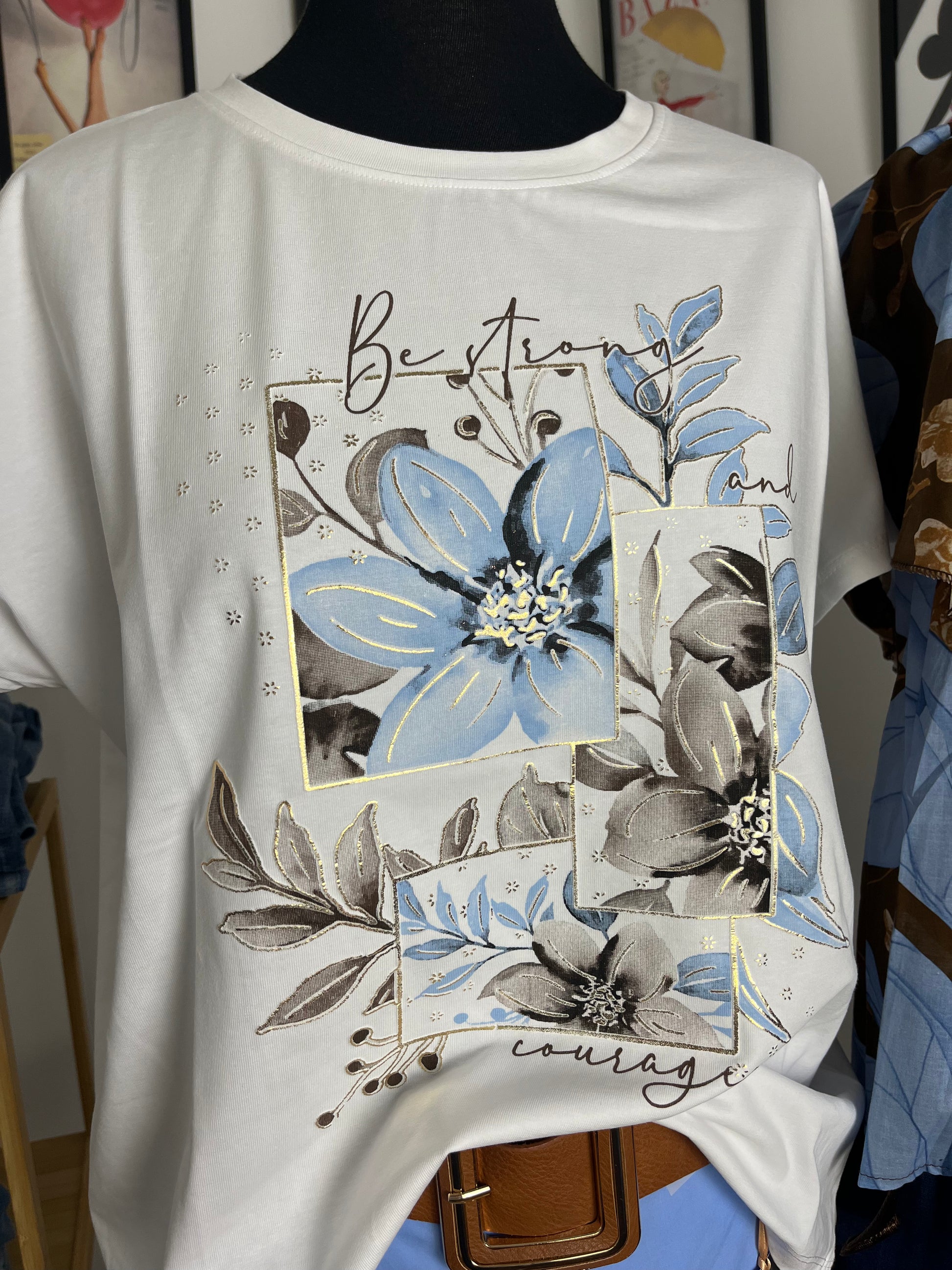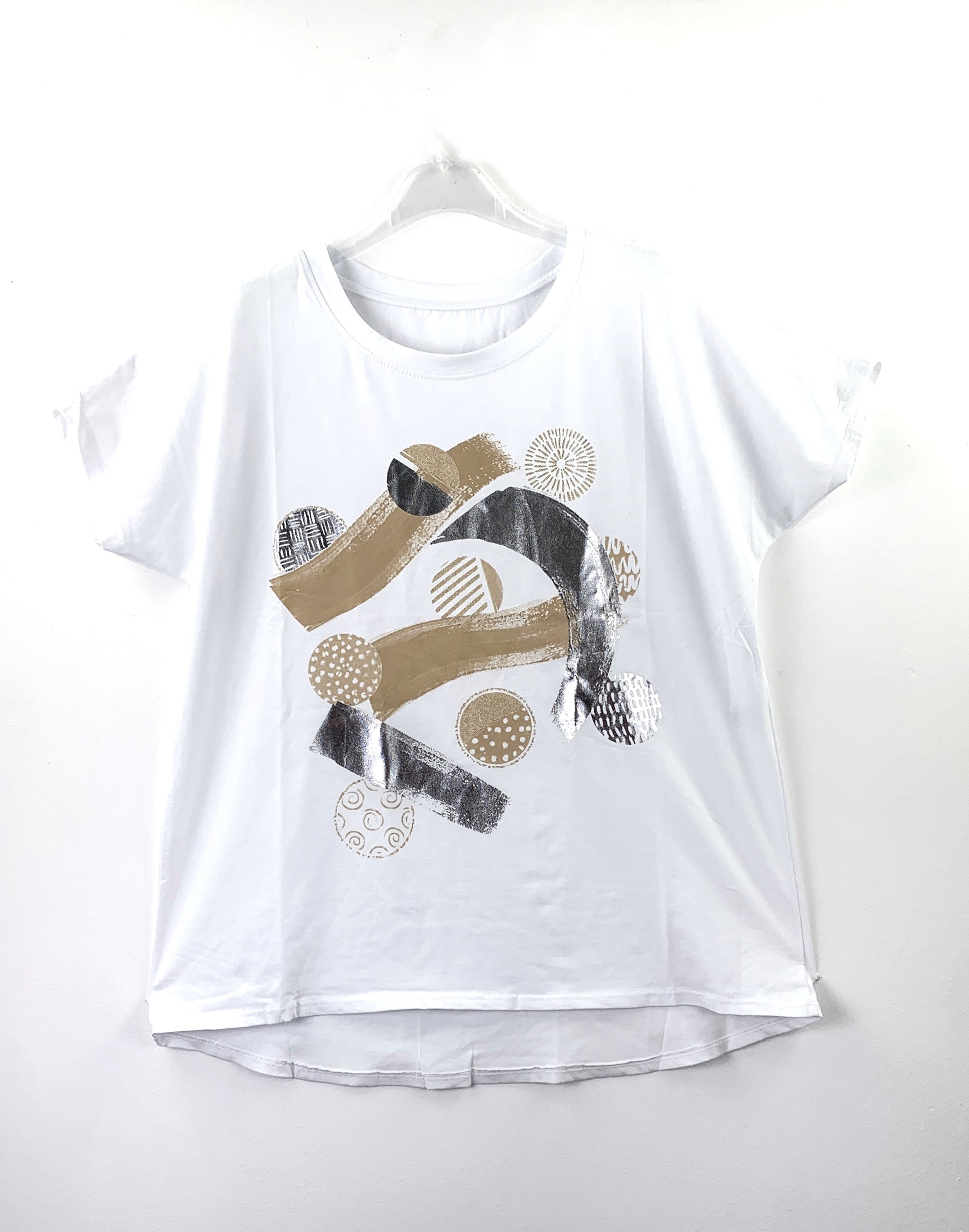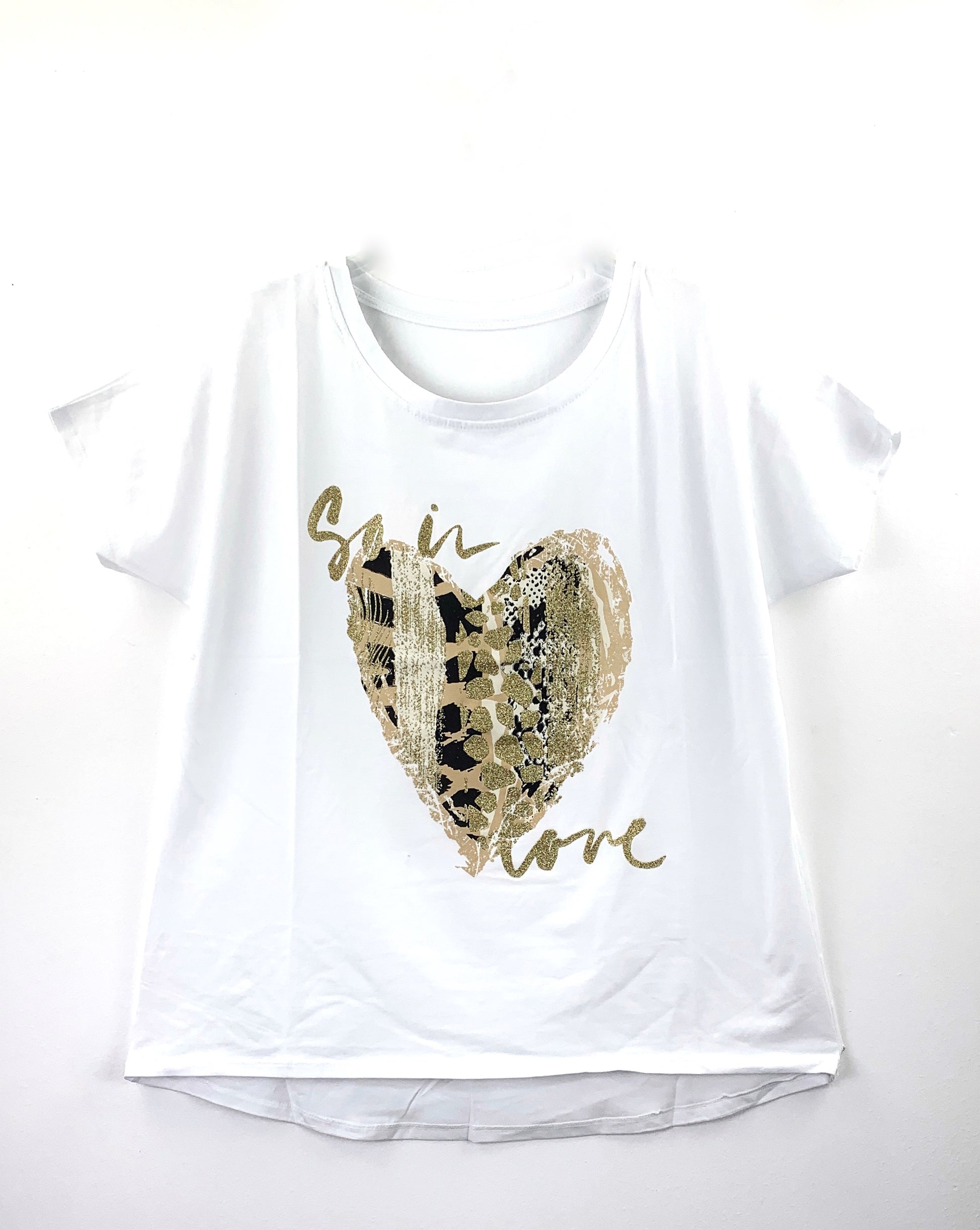 T-shirt in cotone elasticizzato. Taglio morbido. Più lunga dietro.