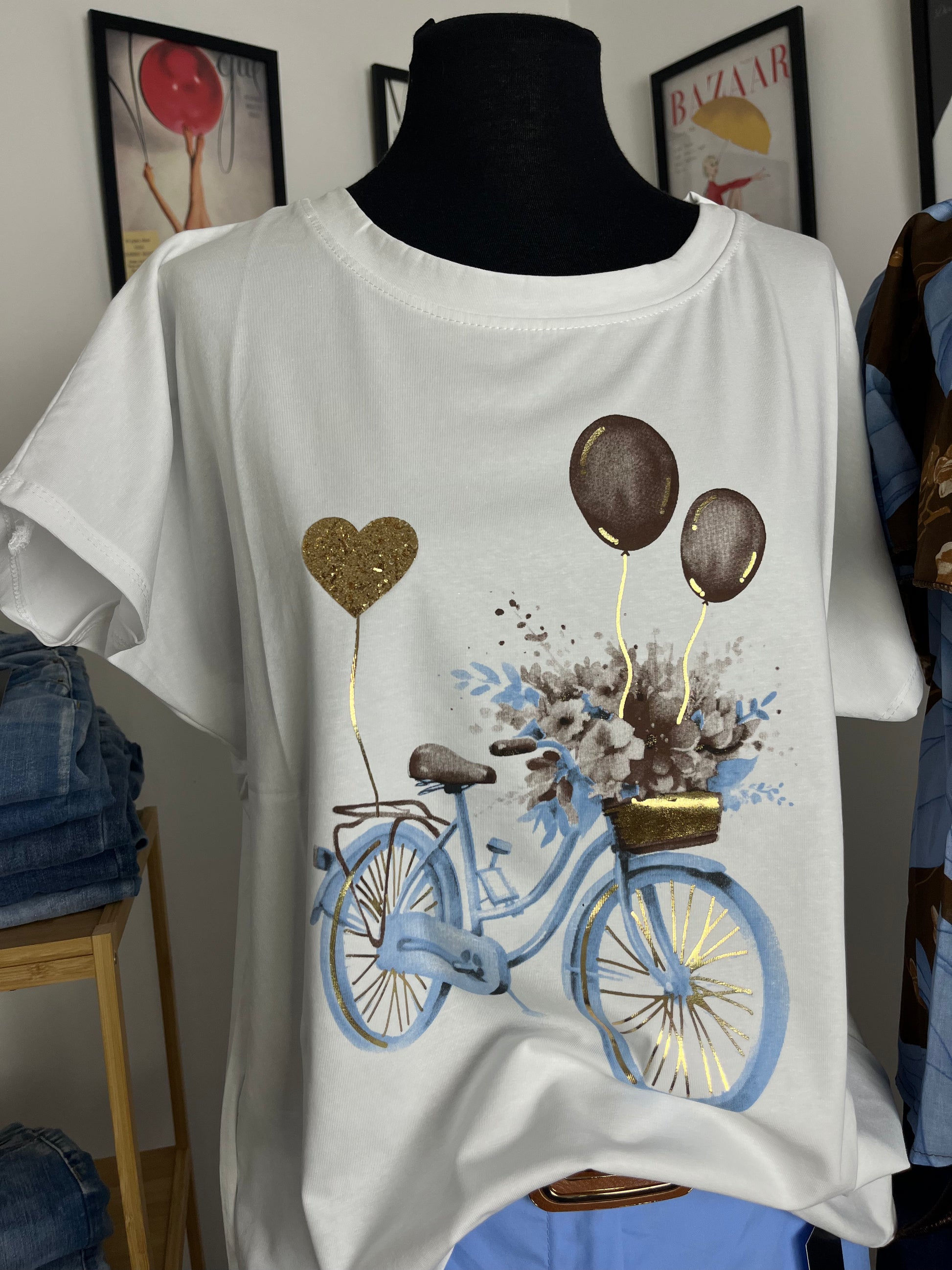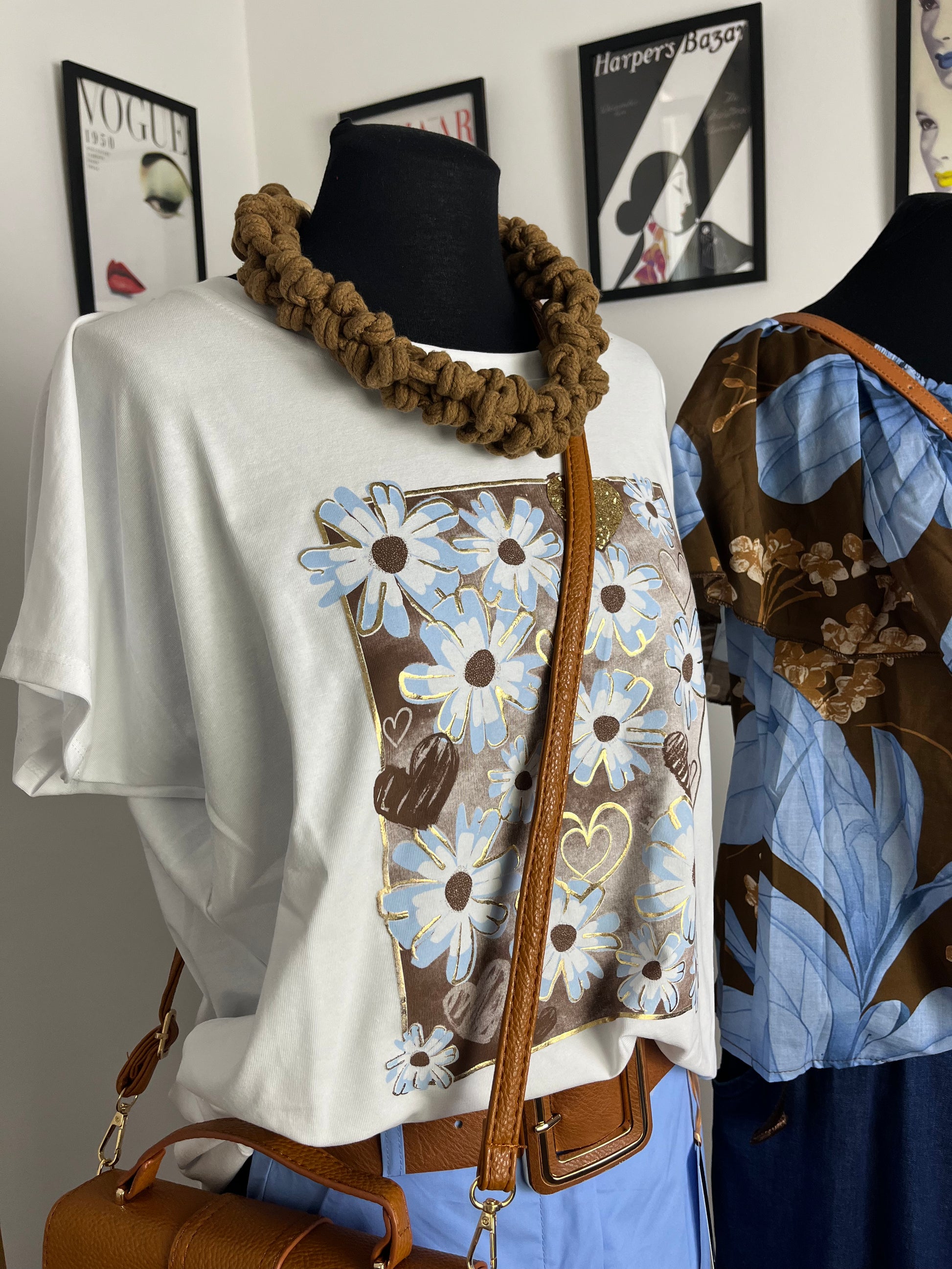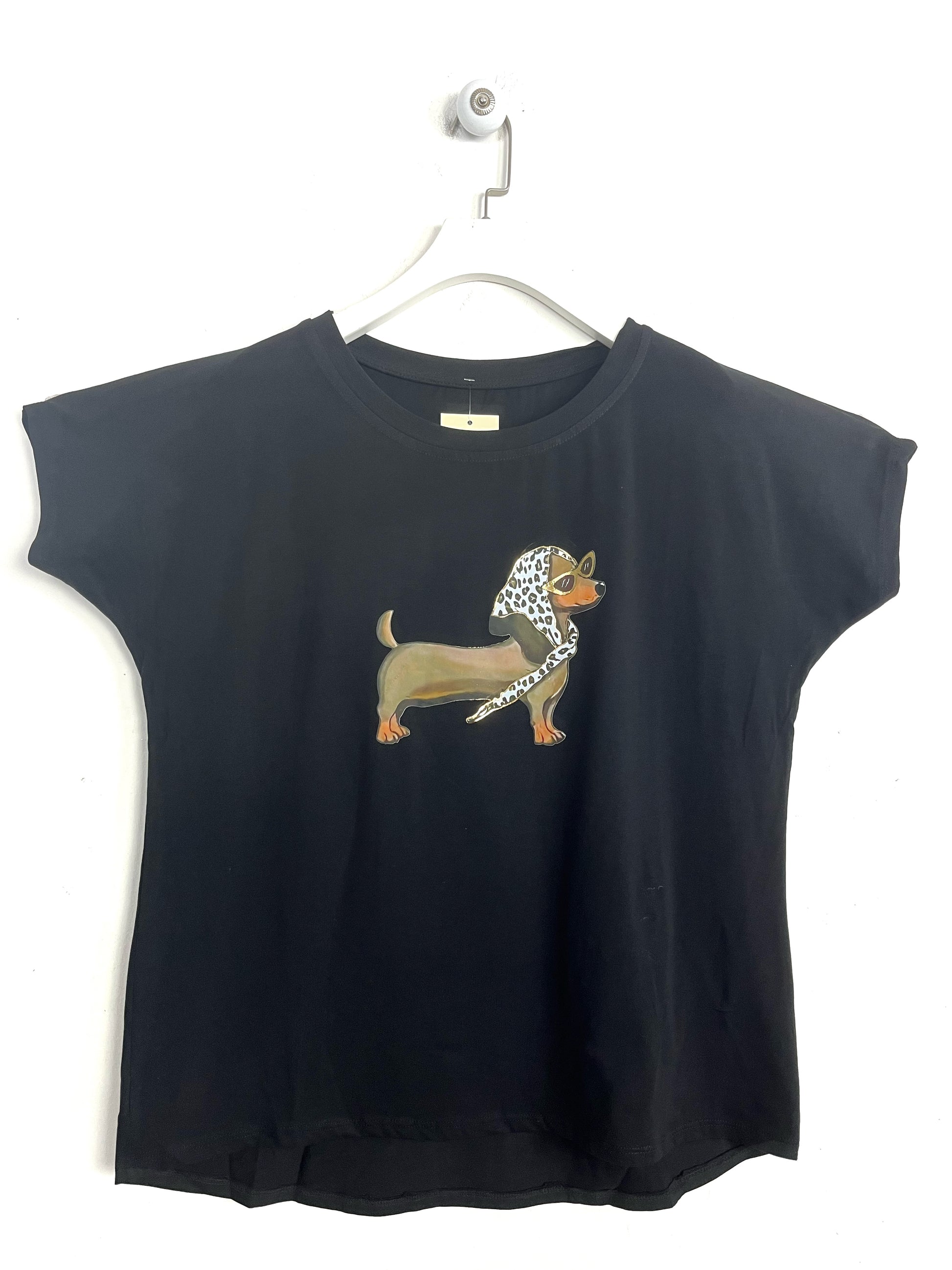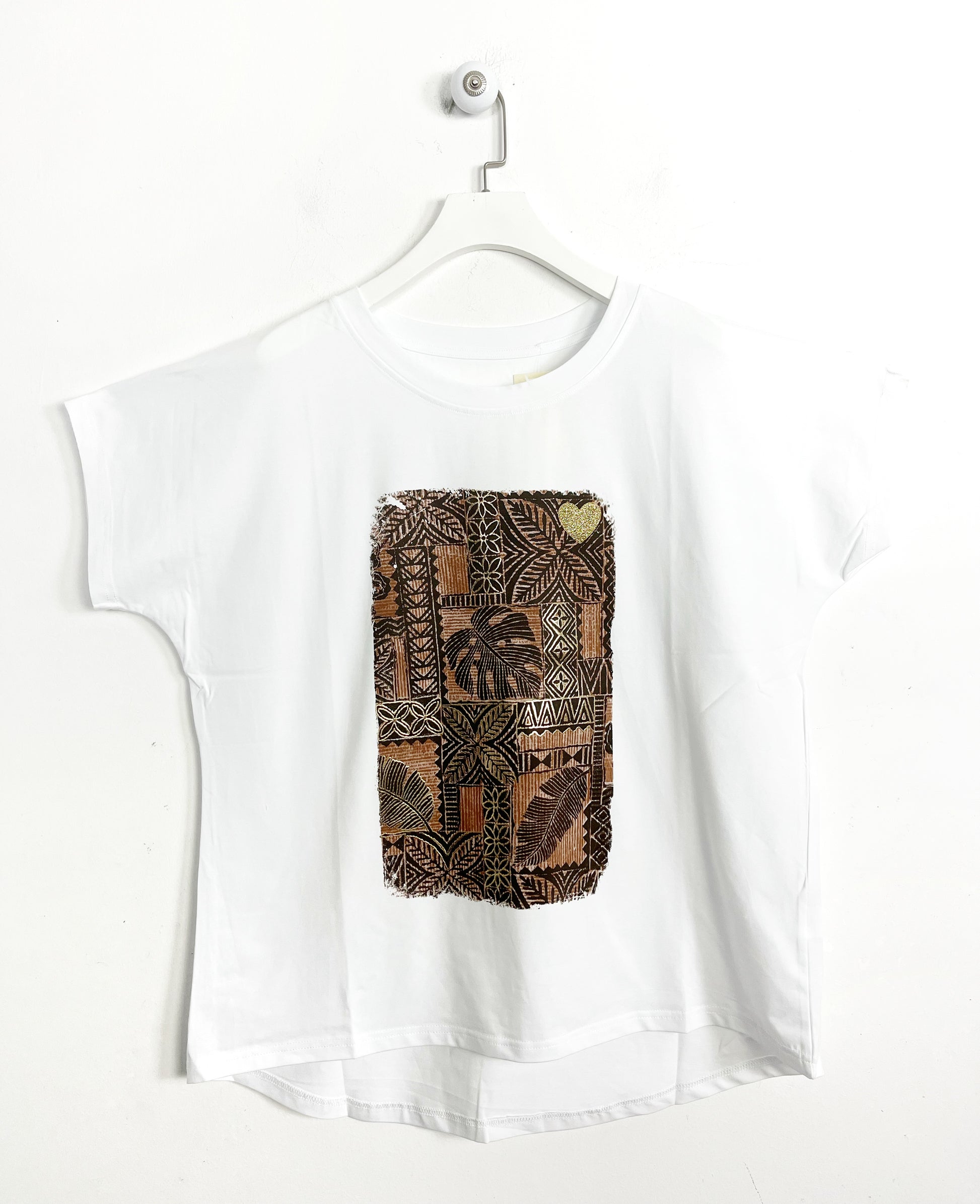 T-shirt in cotone elasticizzato. Taglio morbido. Più lunga dietro.