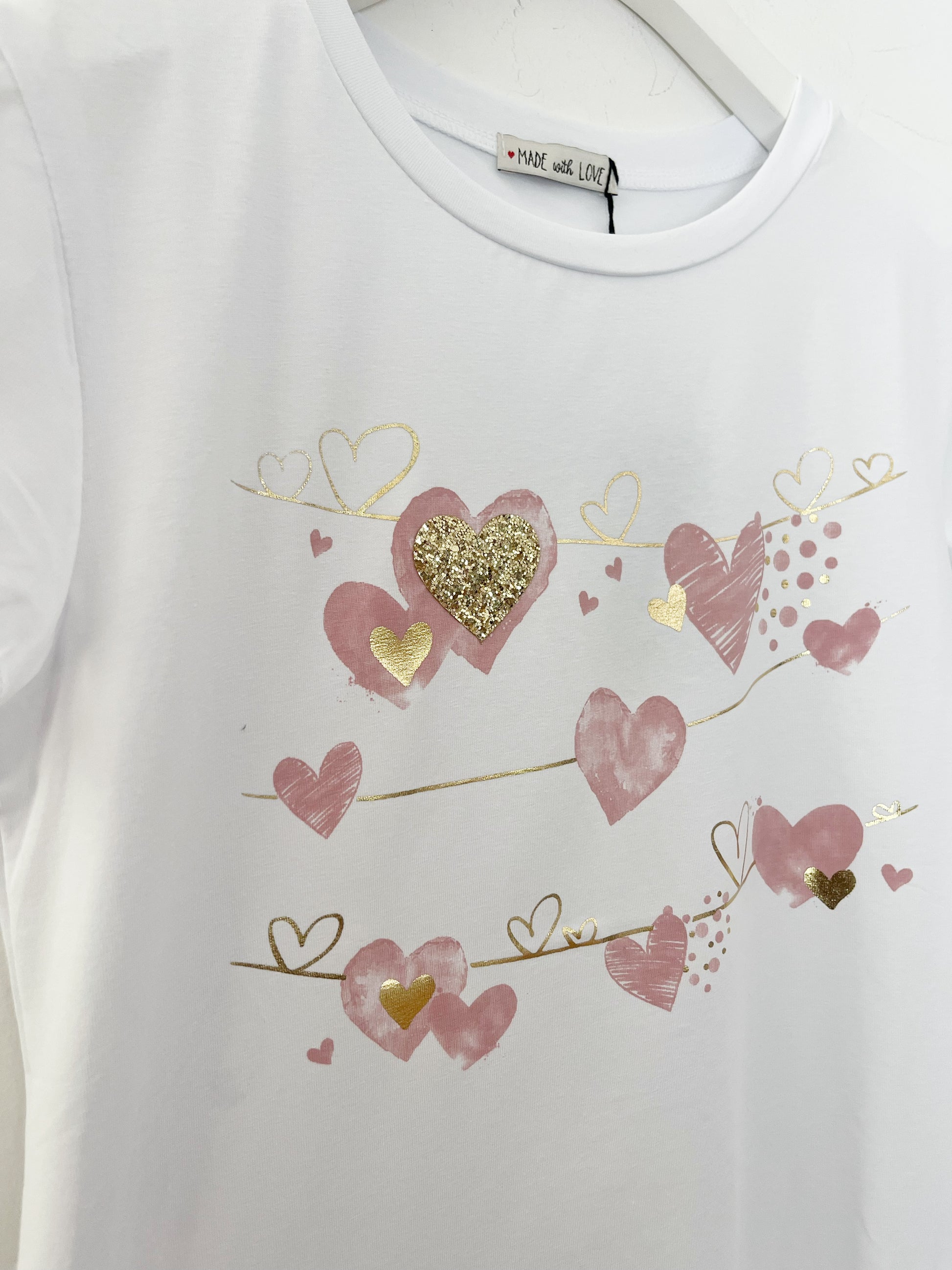 T-shirt con motivo stampato in jersey di cotone elasticizzato. Linea aderente, mezza manica.