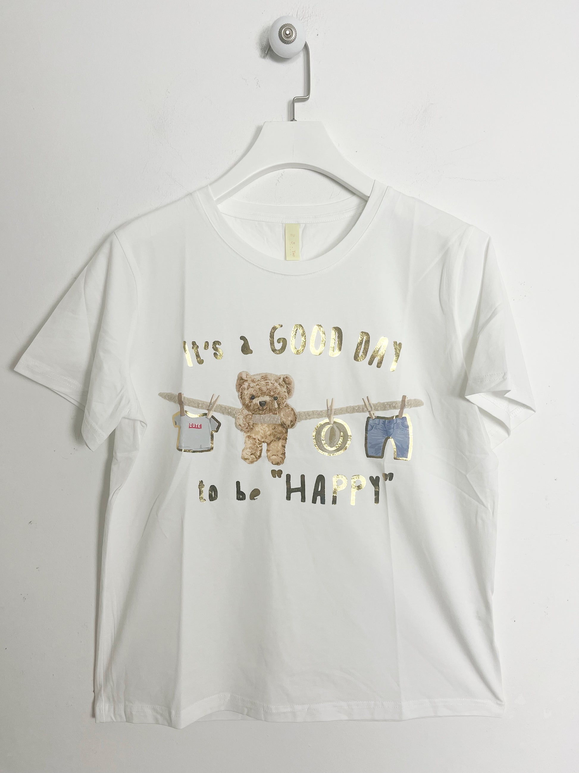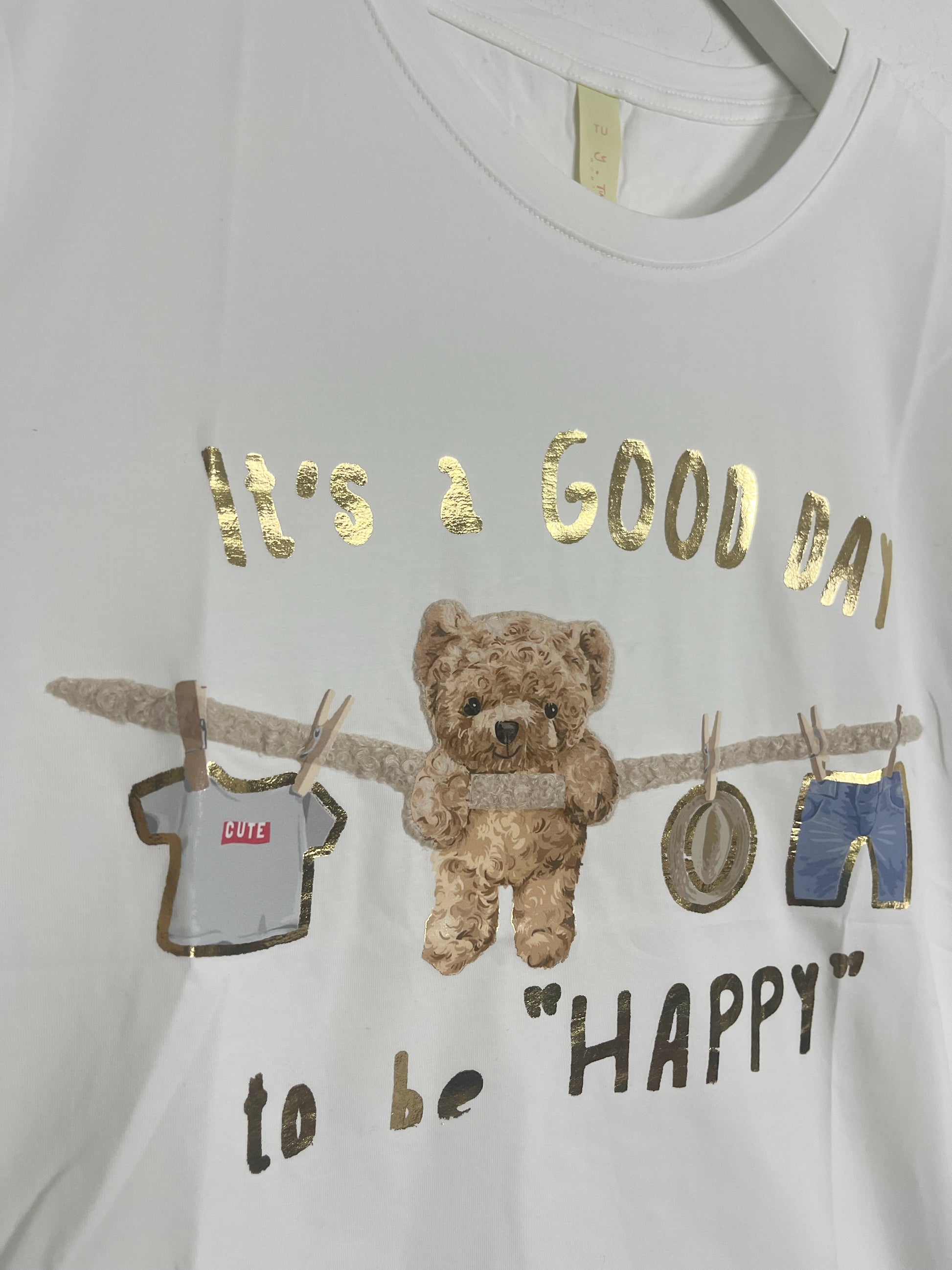 T-shirt con motivo stampato in jersey di cotone elasticizzato. Linea aderente, mezza manica.