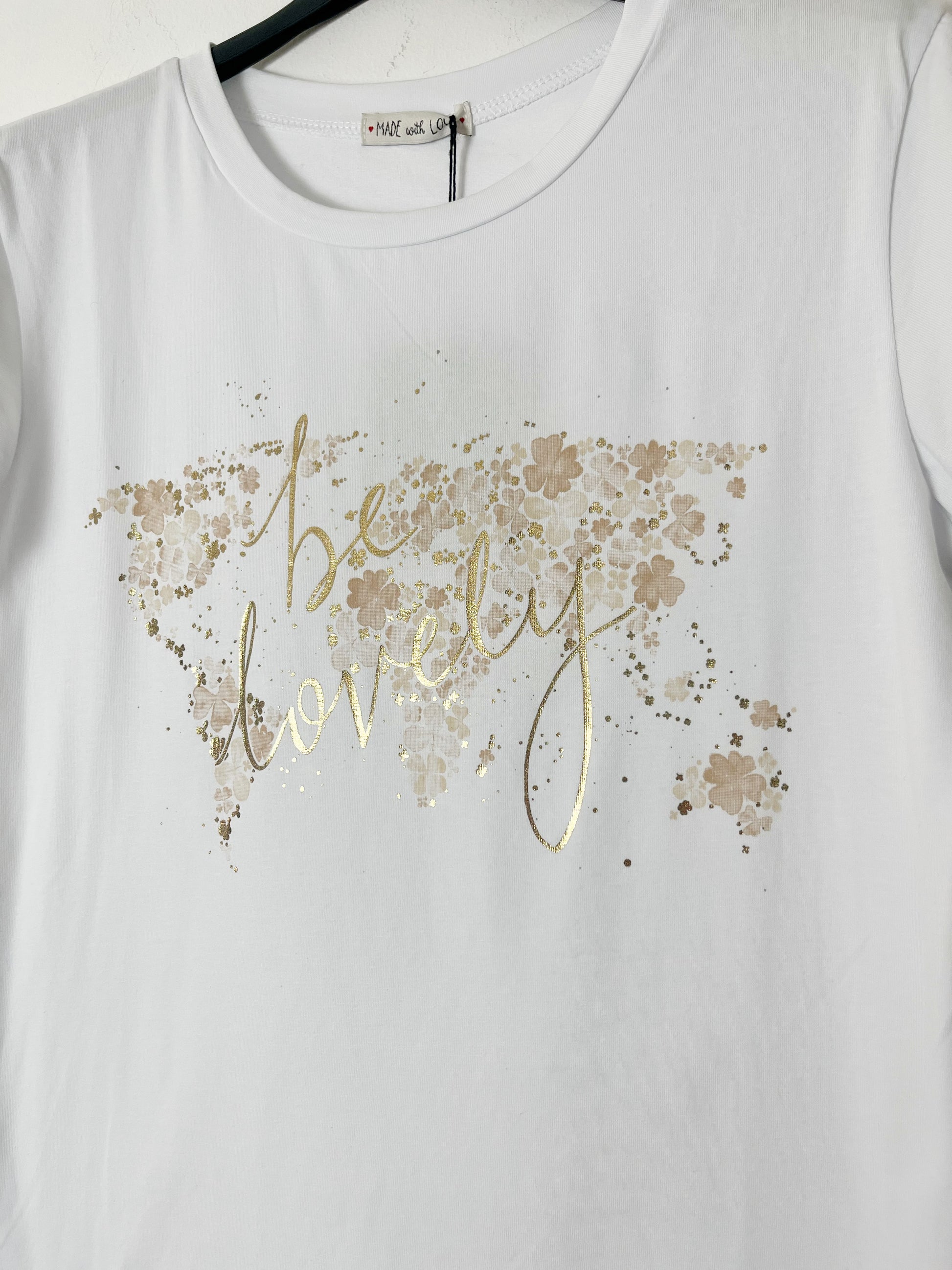 T-shirt con motivo stampato in jersey di cotone elasticizzato. Linea aderente, mezza manica.