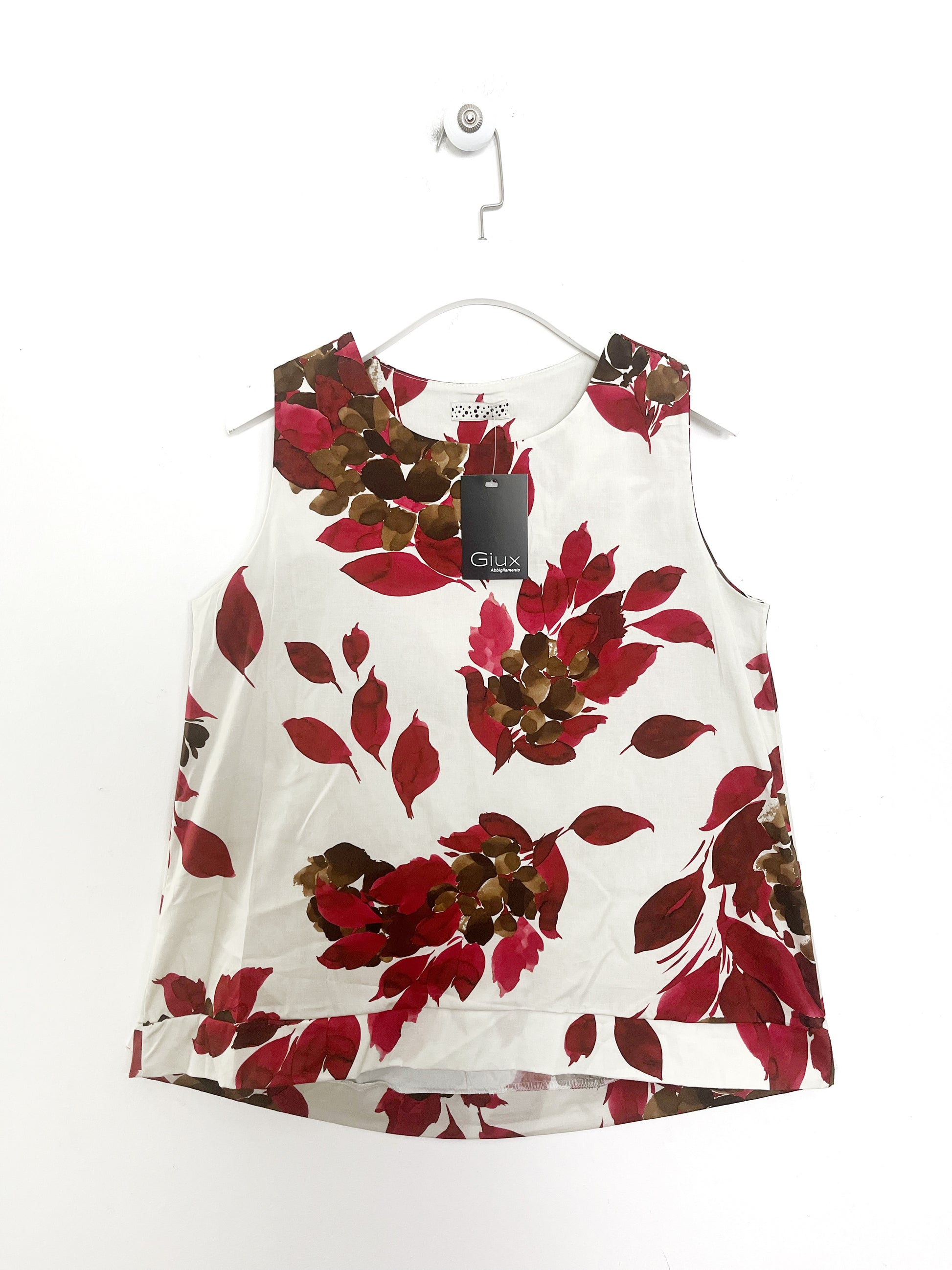 Canotta in cotone girocollo. Corta davanti, più lunga dietro. Svasata e Stondata sul fondo dietro.