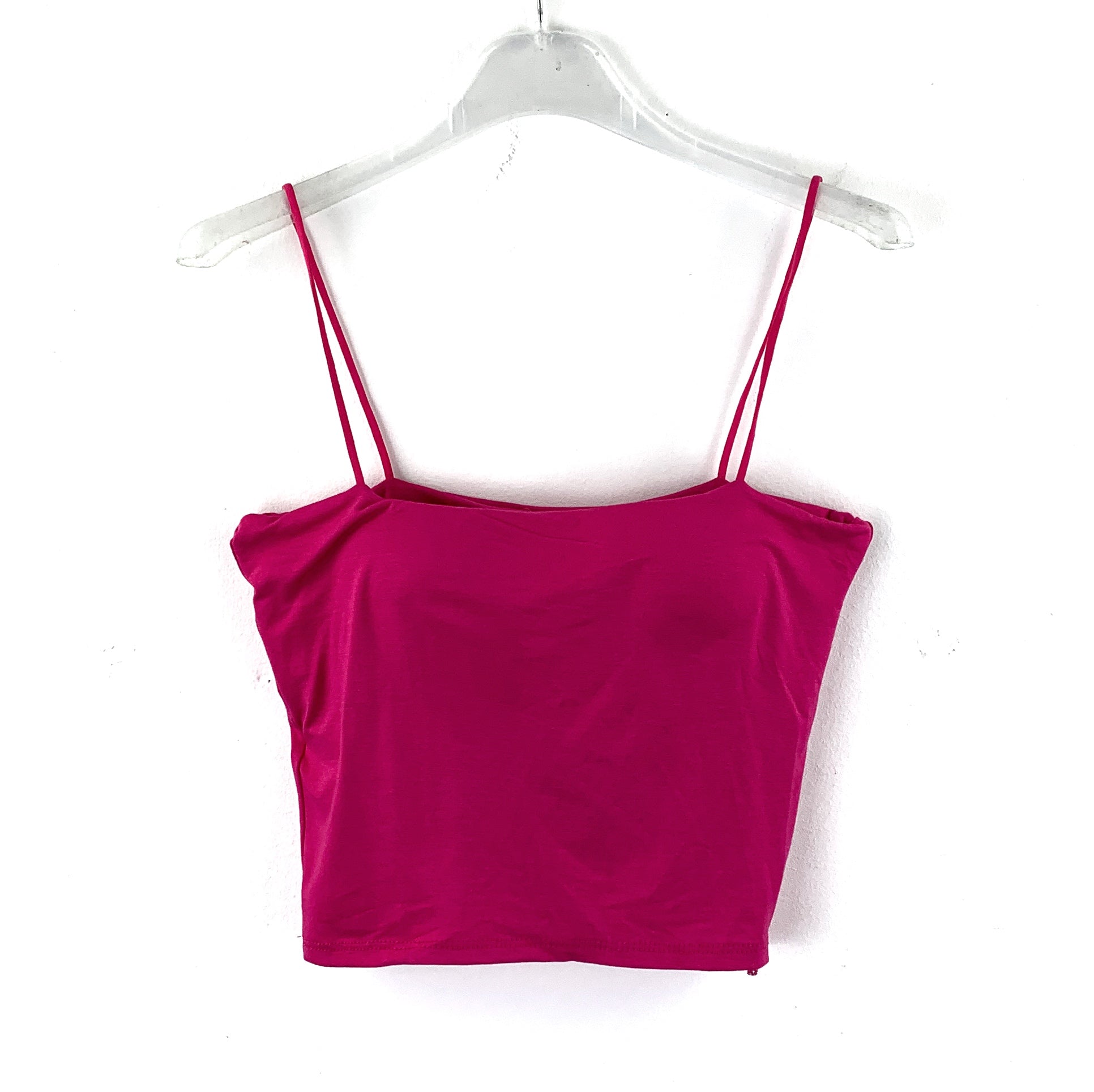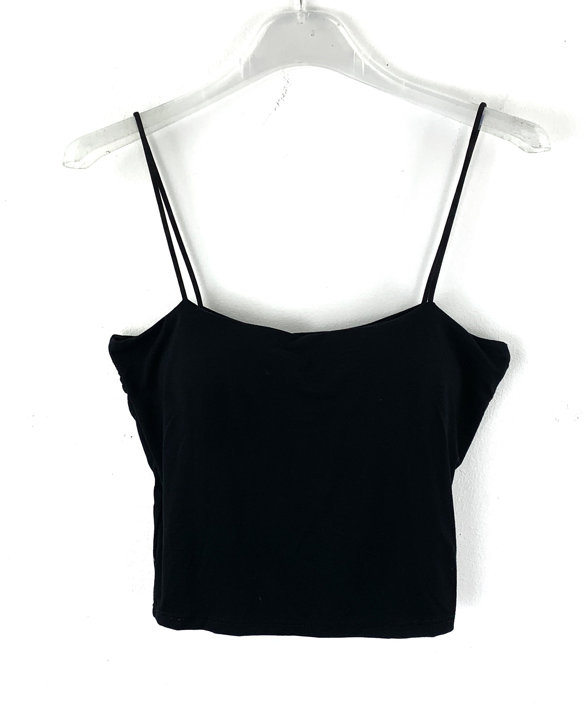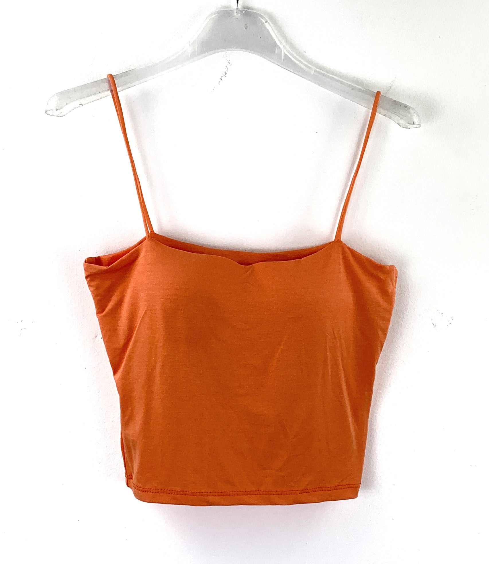 Top corto in maglina di cotone elasticizzato. Spallina sottile. Coppe inserite.