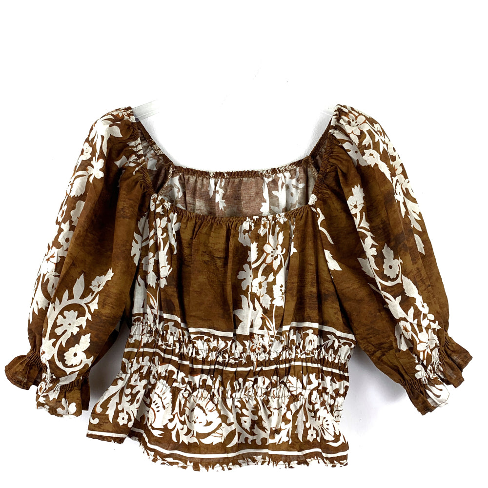 Top corto in puro cotone, manichina a sbuffo