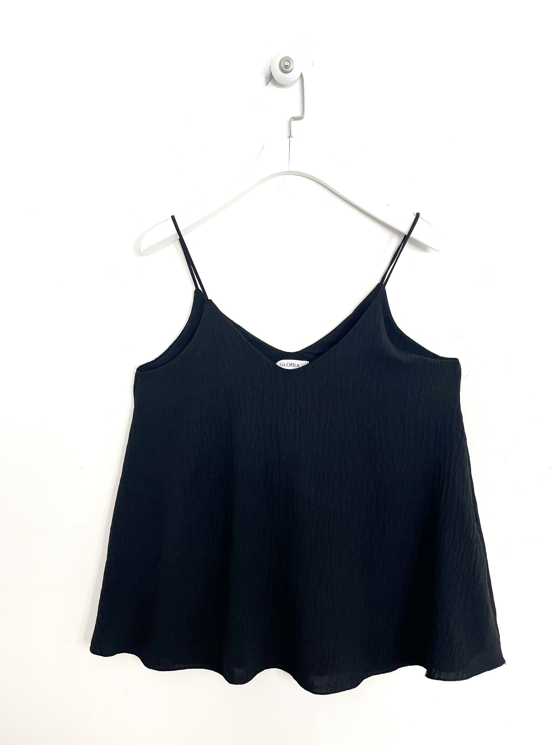 Top in tessuto leggero, con spallina sottile, svasata sul fondo