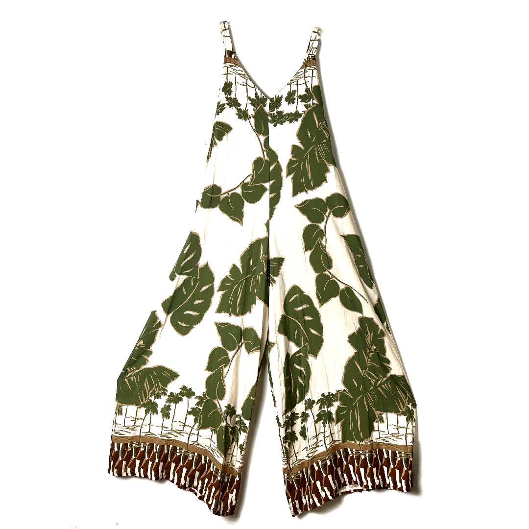 Tuta intera con spalline, scollo a V. Gamba larga molto ampia