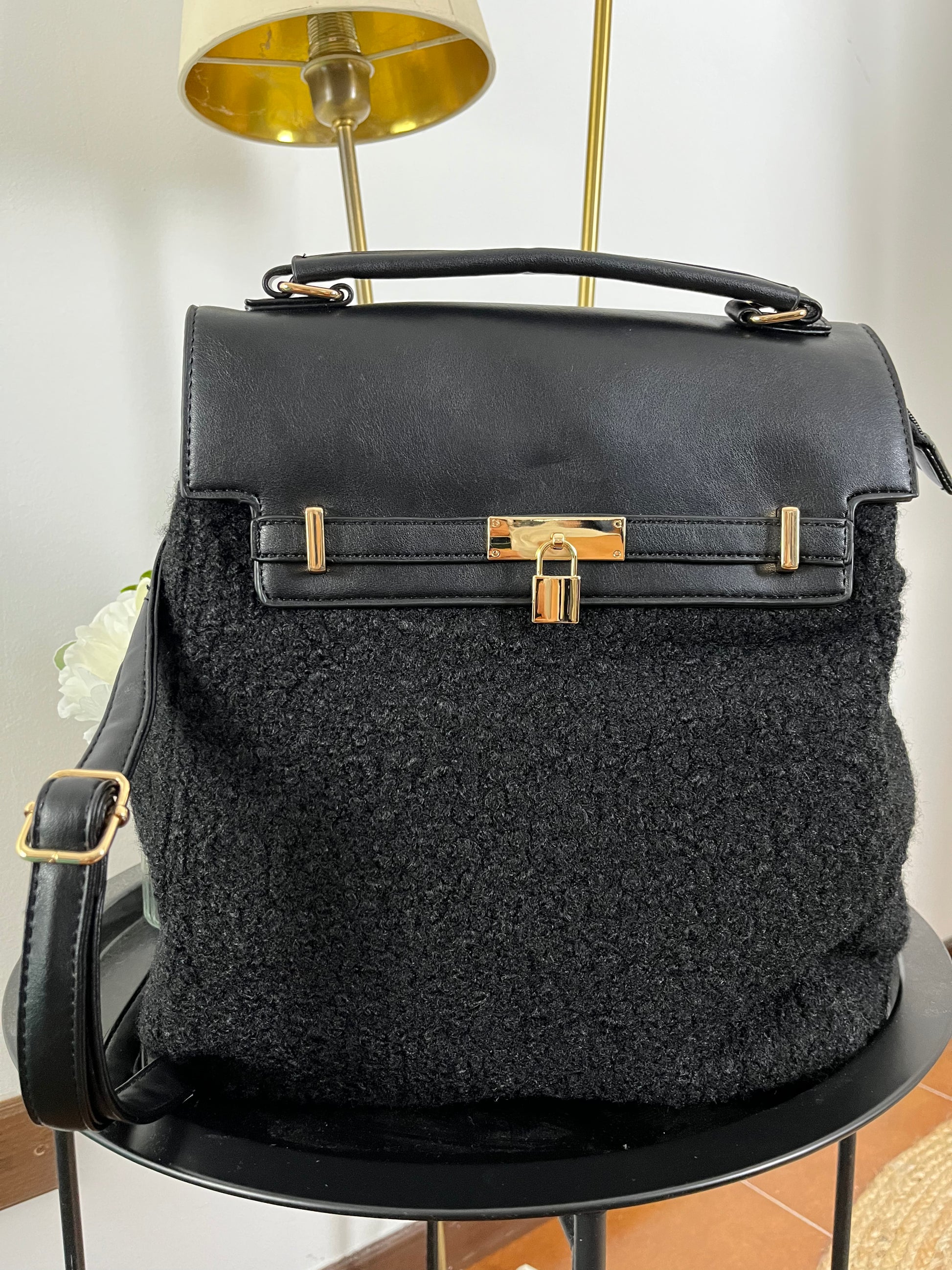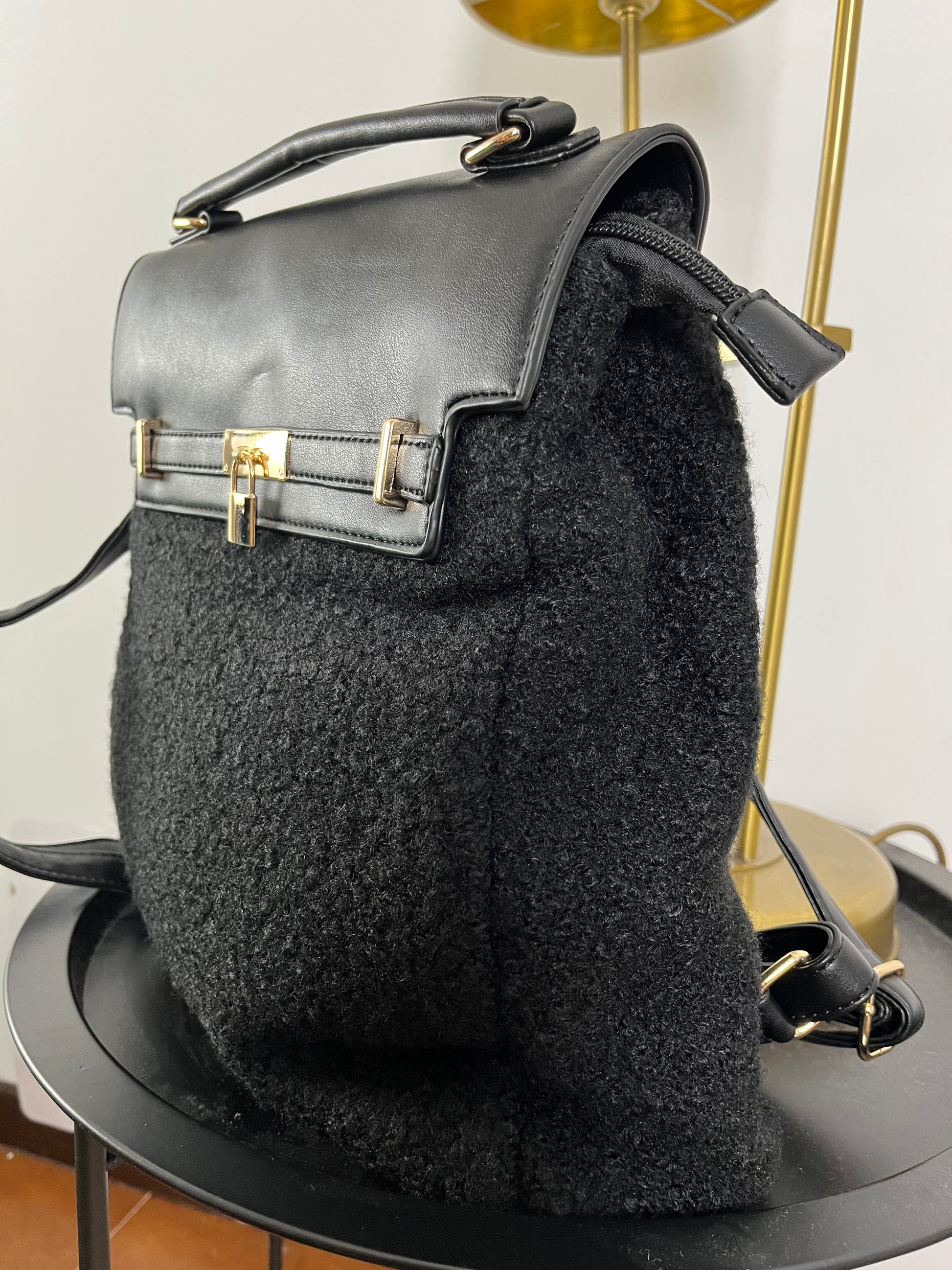 Zaino in tessuto ed ecopelle.
