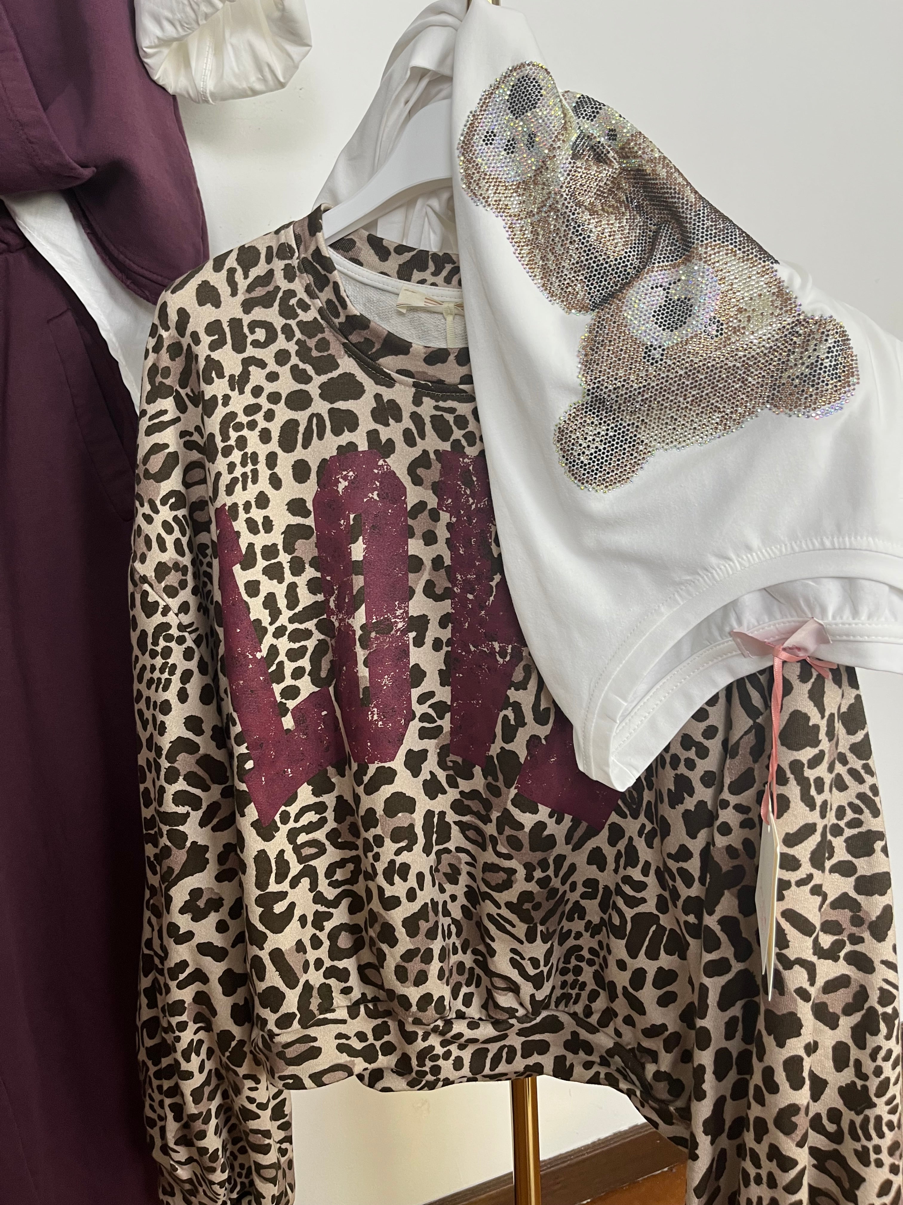 T-shirt Orsetto strass manica lunga slim ⬛️ Bianca